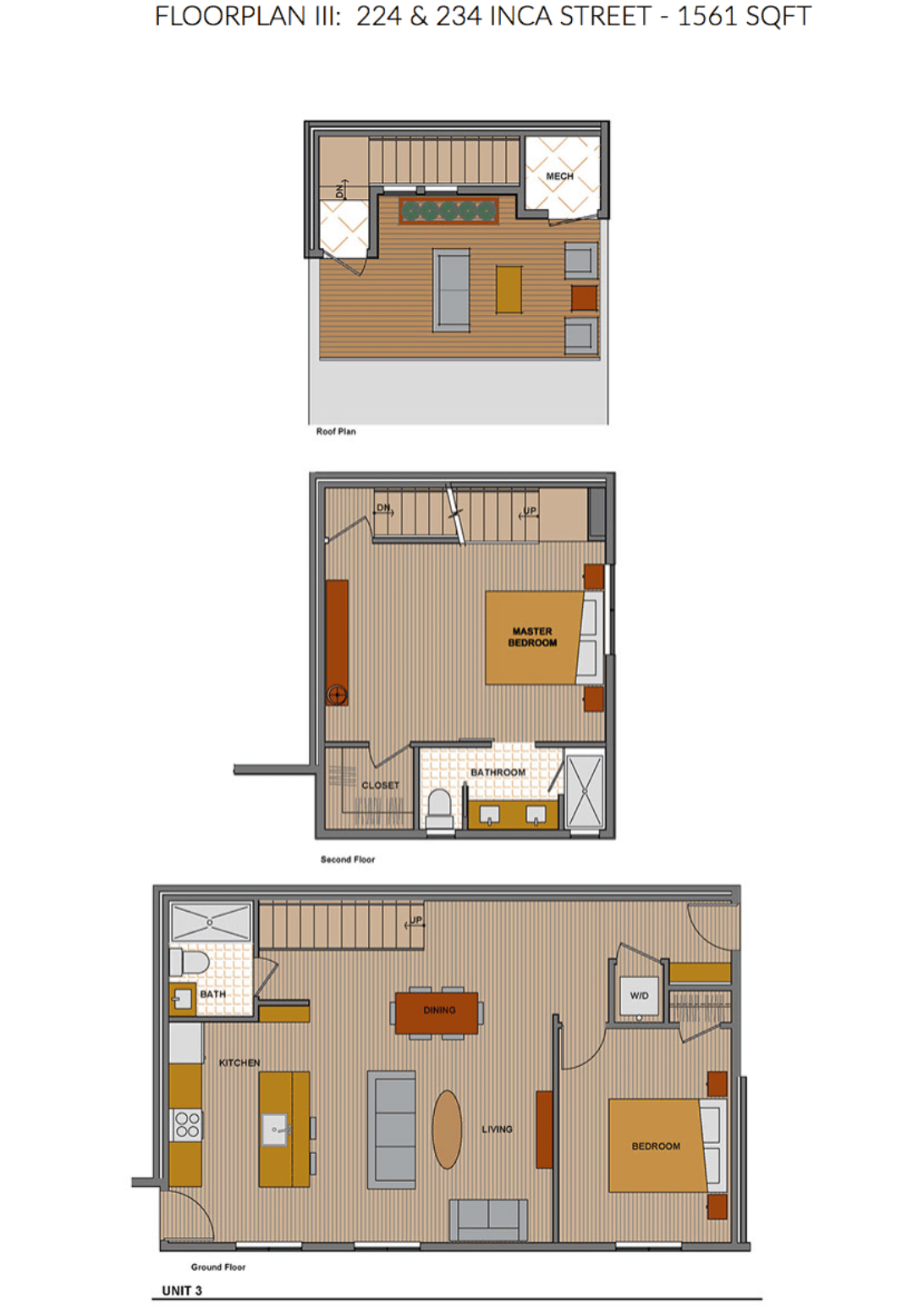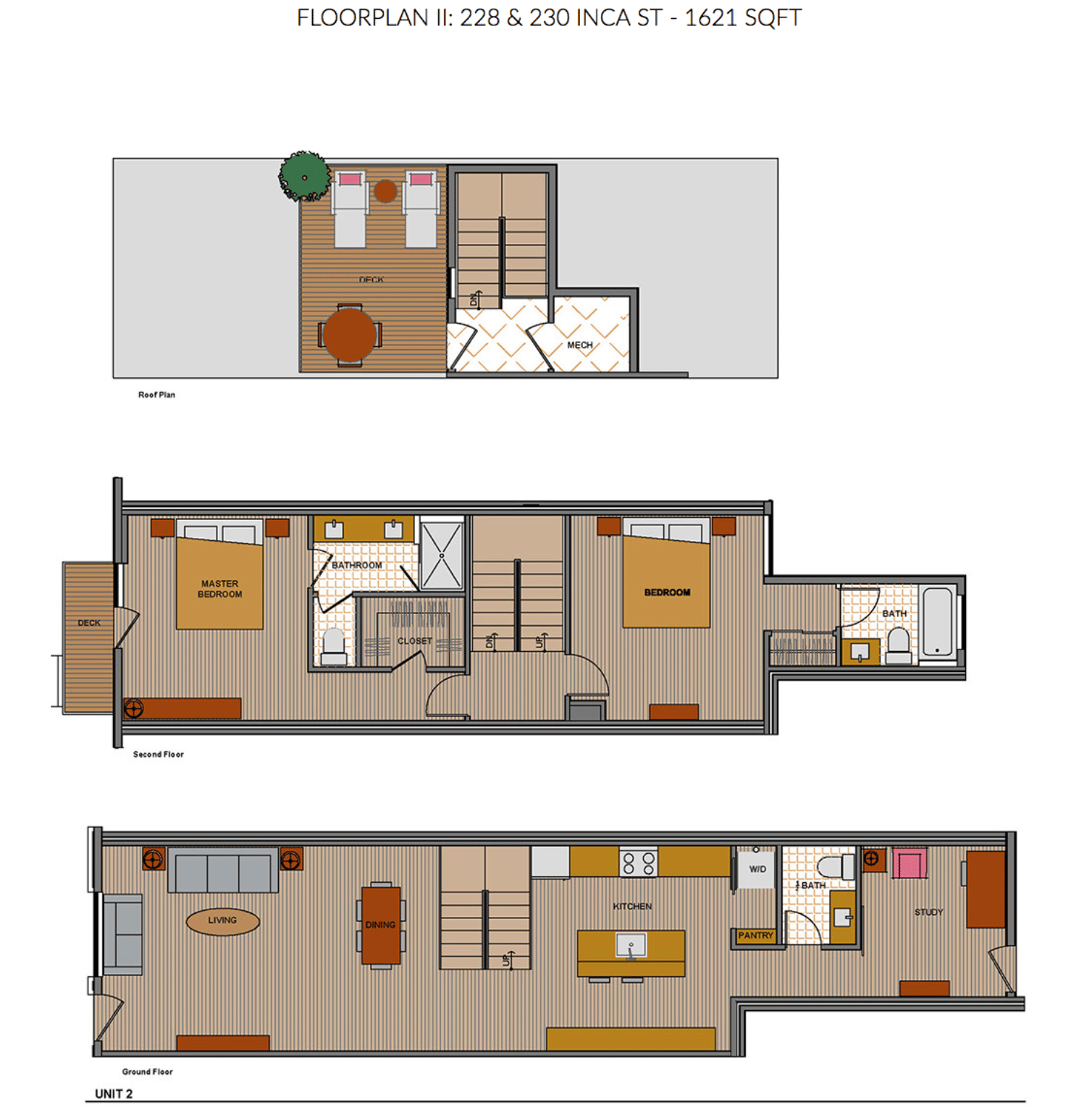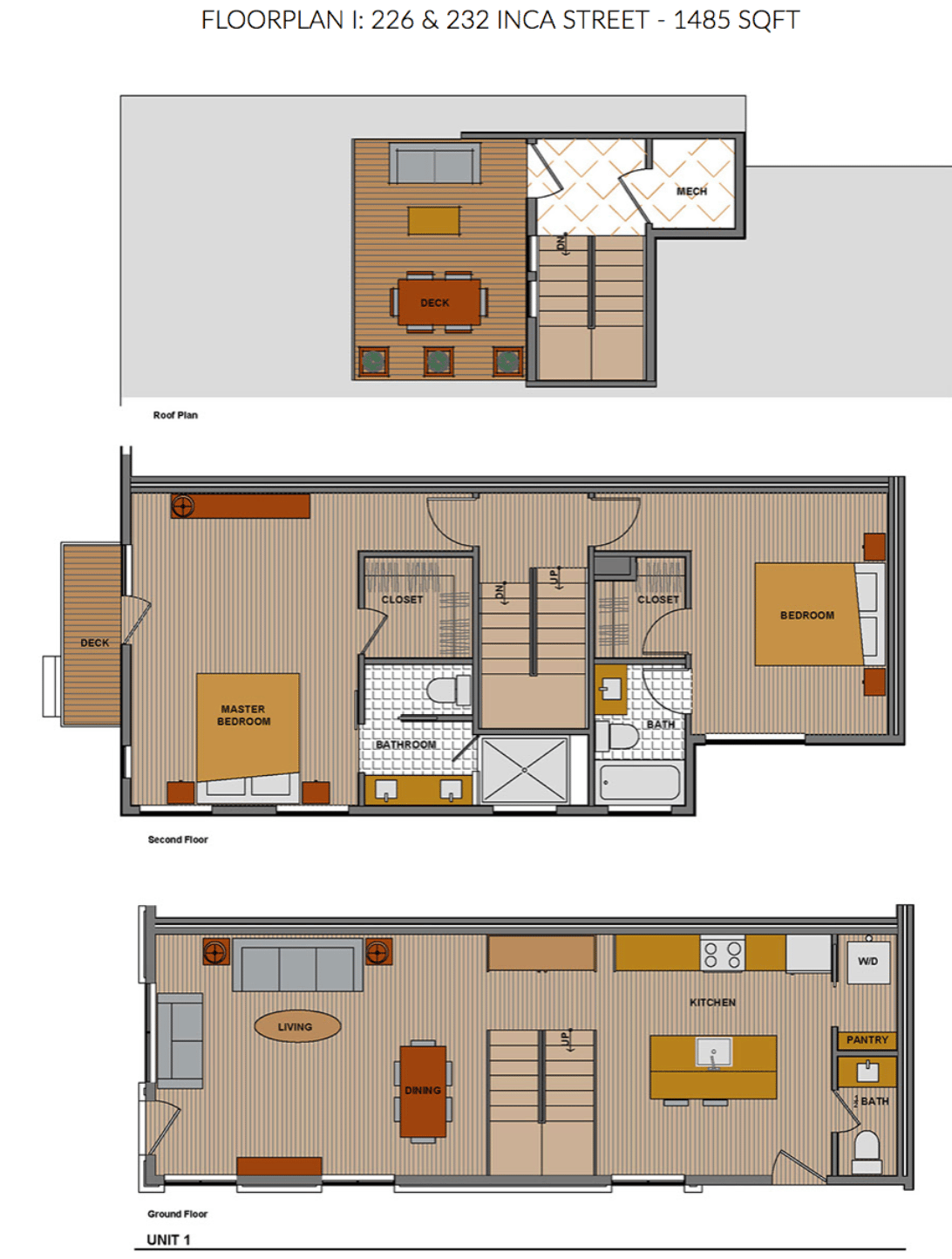 Birch floors run throughout the main level, which has a great room, 1 bedroom and a 3/4 bath. The kitchen design is clean and contemporary, with solid quartz counters and stainless appliances including a french door fridge and gas range. The master suite is on the second level and leads up to the rooftop deck, with city and mountain views. The attached one-car garage has high ceilings for additional storage.