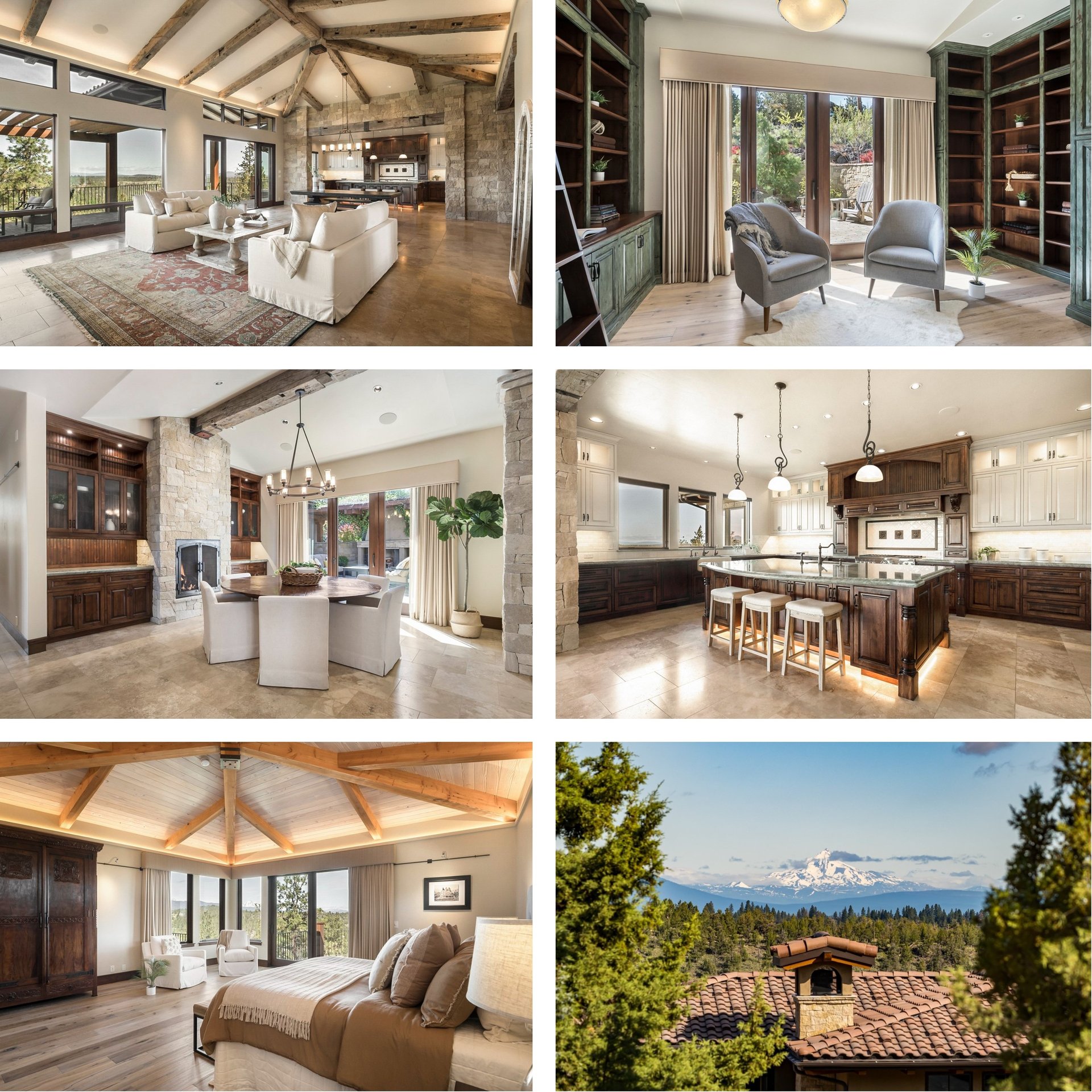 Perfectly sited to capture the 10-peak view and maximum privacy on a premier lot adjacent to the Deschutes River Trail and natural vistas in the exclusive North Rim community. A grand two-story entry vestibule welcomes you to this masterpiece of uncompromising quality and old-world inspired finishes including hand-hewn timbers, stone columns, intricate built-ins and travertine limestone floors. The thoughtful floor plan is designed for entertaining with a flow for indoor / outdoor living throughout the day and in all seasons. More than 4000 square feet of main level living with chef's kitchen, den, library, wine room, primary and guest suites connected by extensive paver decks, patios, and courtyards. Additional living with a kitchenette, suites, and 2nd laundry upstairs. This immaculately cared for artisan home lives like new. Central Oregon living at its best!