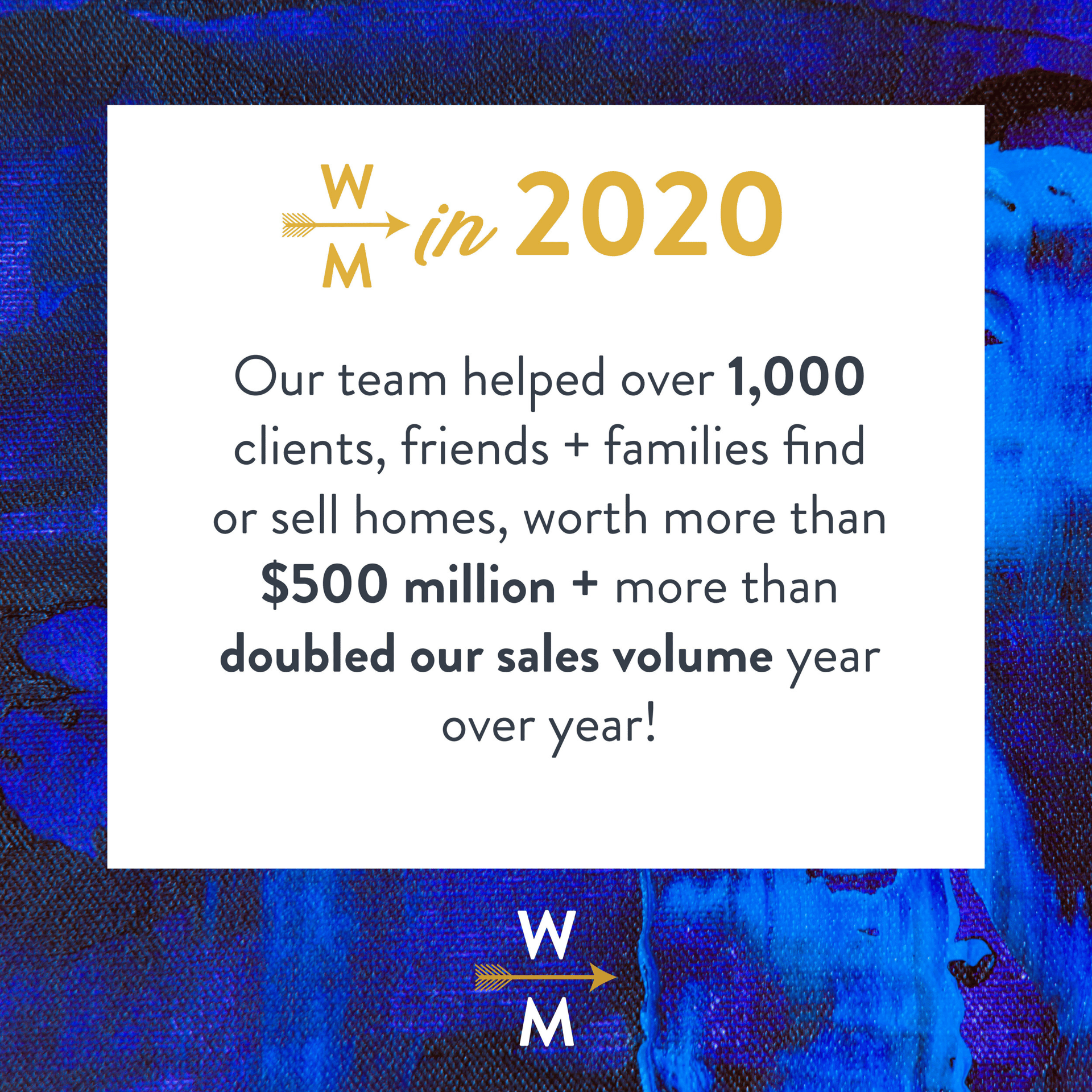 We could go on and on, but the bottom line is...we are so grateful. Grateful for every agent that represents West + Main Homes. Grateful for every client who hires, refers, and trusts our team. And grateful for every challenge, opportunity, and moment that has led us to our 4th year - 2021.