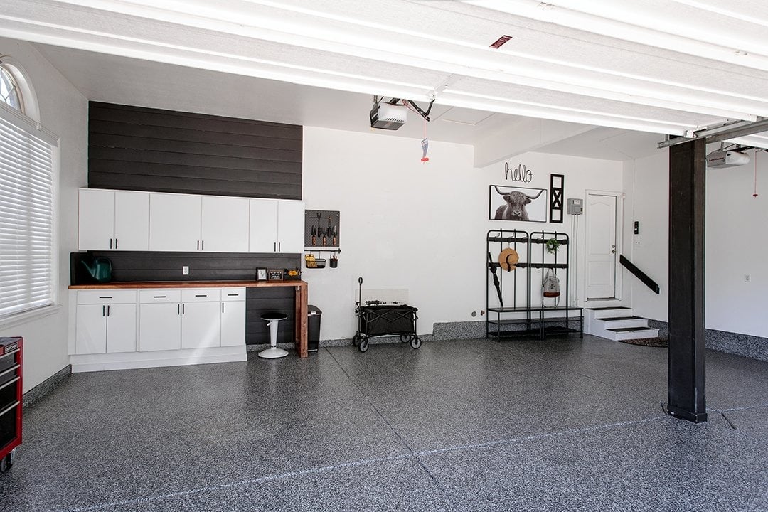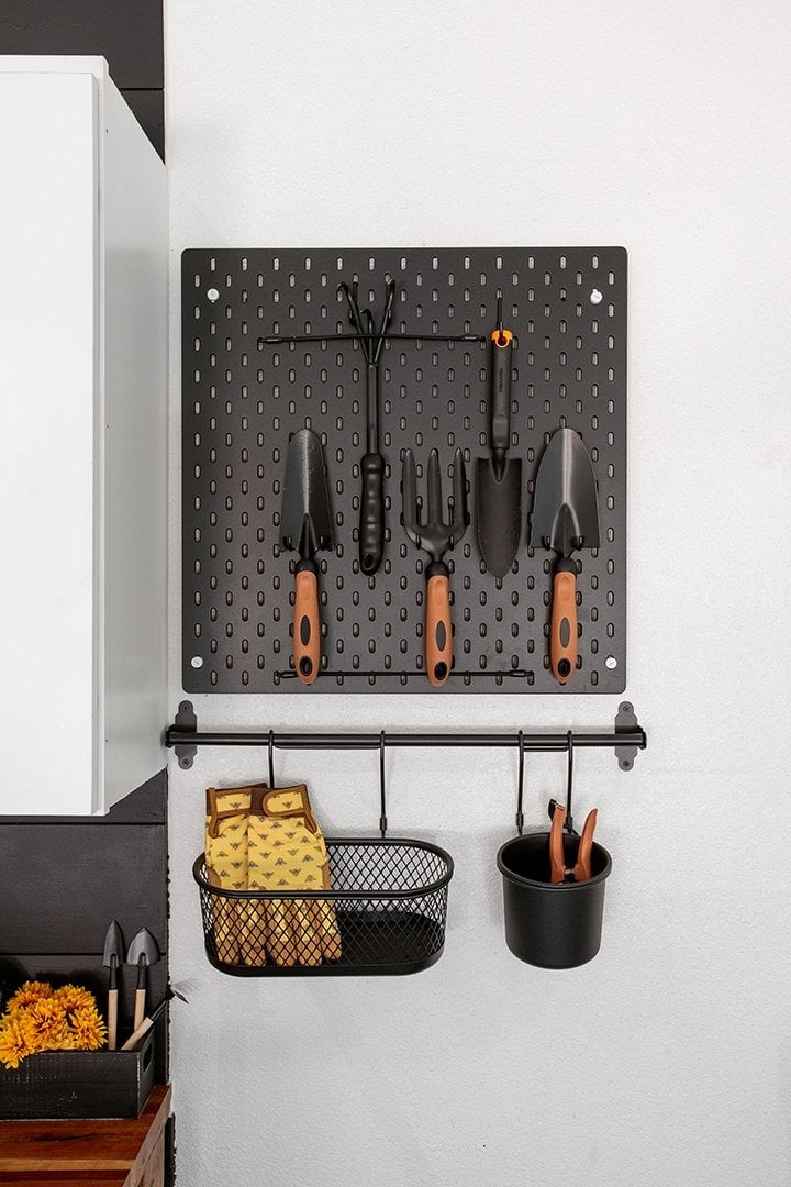 What started as a laundry room makeover led to some unexpected surprises—like a mini garage revamp! “I knew I’d reuse my old laundry cabinets in the garage, but adding a shiplap feature wall and butcher block workbench were last-minute decisions,” she says. “And I’m so glad I did! Who knew a garage could be such a fun design space?”