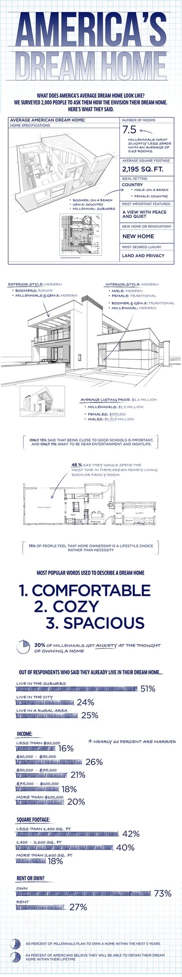You might be surprised to hear the average "dream house" isn't the shining 10 bedroom mansion you're picturing, but rather a modern and comfortable 2,000 square foot, home in the suburbs.