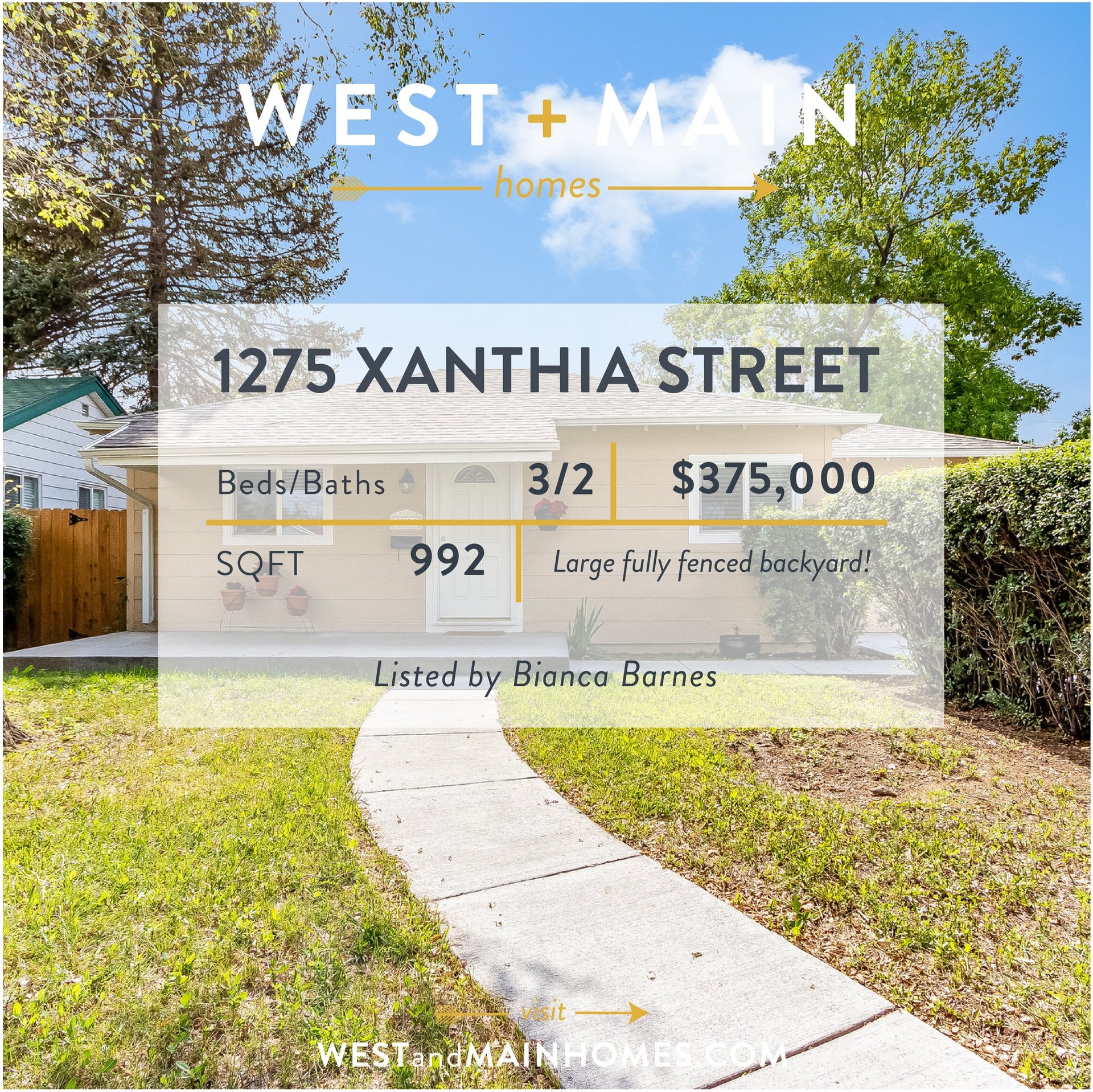 Listed by Bianca Barnes for West + Main Homes. Please contact Bianca for current pricing + availability.