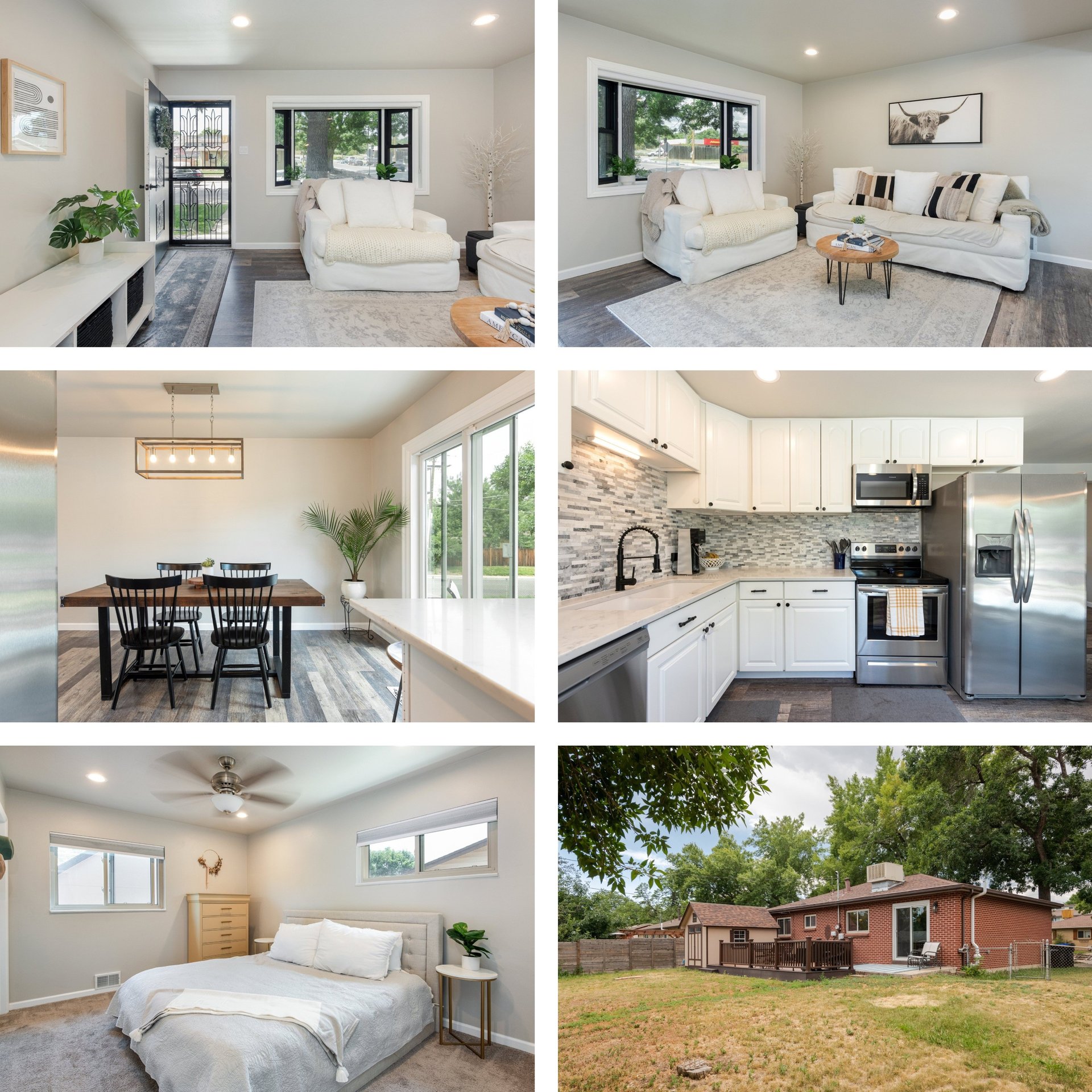 This home is situated on a big corner lot on a quiet street lined with classic brick ranches + mature trees. Jump on the Ralston Creek Trail just around the corner and have access to miles of trails to the west or get to all the great local dining + shopping options in Olde Town Arvada within minutes. Fully updated in 2021, this place is totally move-in ready. The open living space gets a ton of natural light and flows seamlessly from the living room into the dining area. The recently renovated kitchen has a clean and modern design with white shaker cabinets, marble countertops, and stainless steel appliances. Three bedrooms are conveniently located on the main level, and the primary bedroom features an attached bathroom. The basement has a high-quality finish and adds a ton of additional living space, complete with a great room, two more bedrooms, a laundry room, and a storage room. Step outside through the sliding glass patio door from the dining room, and you’ll find a big, durable composite deck that goes almost the full length of the house and offers an incredible outdoor living space. The backyard is huge and has a ton of potential for gardens, a fire pit area, RV parking or a detached garage. This ideal location is so close I-70 for an easy commute to Denver or the mountains and so close to the Arvada Ridge G-Line Light Rail Station. Live just minutes from Olde Town Arvada + Golden, close to all the shopping + dining options you need, and enjoy the nearby trails and open space that come with calling Arvada home.