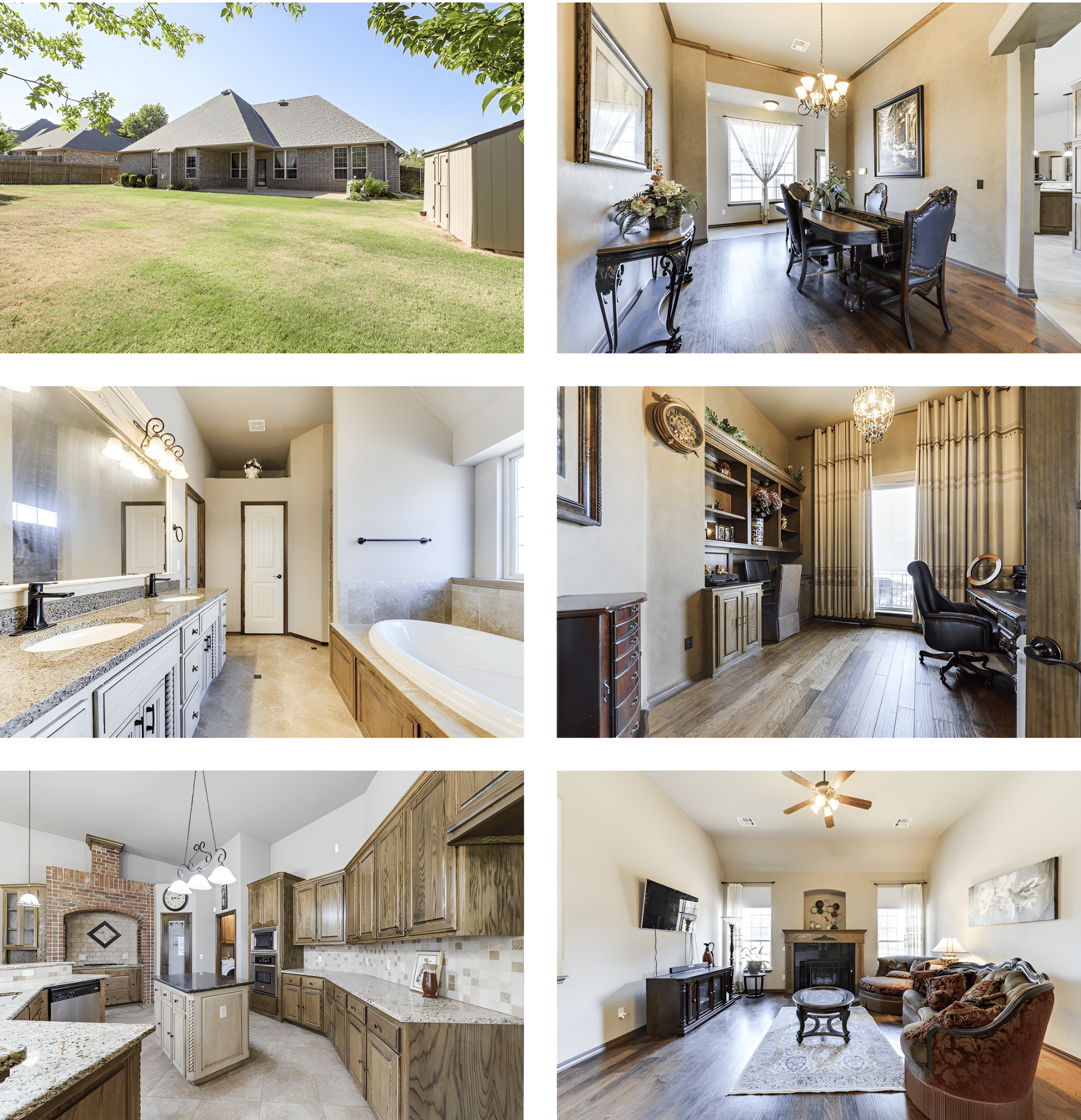 Edmond zip code + schools with OKC utilities, best of both worlds! As you enter the home, you’re greeted with tall ceilings, a grand dining space and a study with rich woodwork. To the left, you’ll find a guest room with an ensuite full bath. Around the corner is a spacious kitchen connected to a breakfast nook and living space. The kitchen features granite countertops, tons of storage, an island, and a gas cooktop with surrounding brick accents. Off the living space is a hallway with 2 bedrooms and a full bath in between. One of the bedrooms is currently utilized as a theater room with all the equipment you need. On the other side of the house, you’ll find the primary suite. The attached bathroom showcases a large soaking tub, wrap-around shower and generous closet. Don’t miss the added solar fans in the attic or all the amenities the neighborhood provides...playground, disc golf, basketball court, and trails. Schedule a showing today!