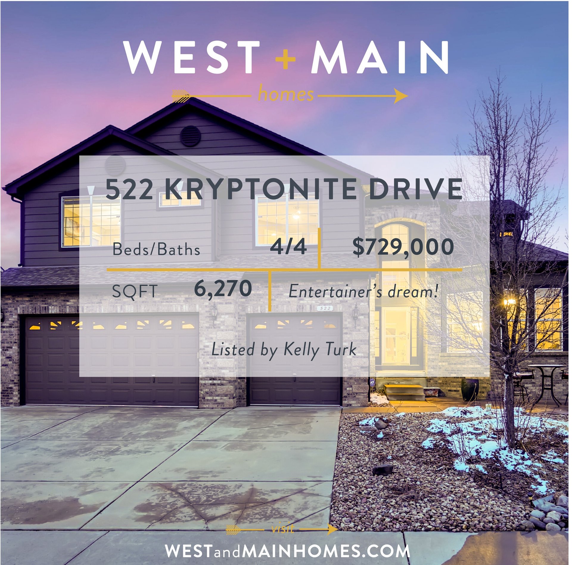 Listed by Kelly Turk for West + Main Homes. Please contact Kelly for current pricing + availability.