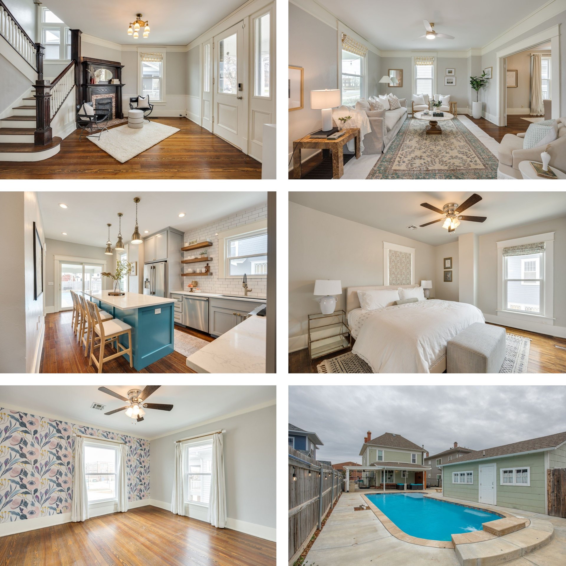 This charming colonial is full of character and features modern updates throughout. Step inside to find a spacious sitting parlor with an exquisitely carved fireplace, bathed in natural light that accentuates the original hardwood floors. The living room seamlessly flows into a formal dining area, perfect for showcasing artwork or as a cozy study. The renovated kitchen offers stainless steel appliances, quartz countertops, and ample cabinet space. Enjoy the serene backyard pool view while you cook! The primary bedroom suite is generously sized and features an impressive soaking bath and large shower. Upstairs, you'll find another beautifully updated full bathroom for the secondary bedrooms. The dreamy backyard provides space for lounging, grilling, and taking a refreshing dip in the pool. The detached garage with alley access also includes a pool bath. This home is conveniently located minutes away from local restaurants, shops, and entertainment, offering easy access to everything OKC has to offer. Welcome to your new haven, where the perfect blend of historic allure and modern luxury awaits you!
