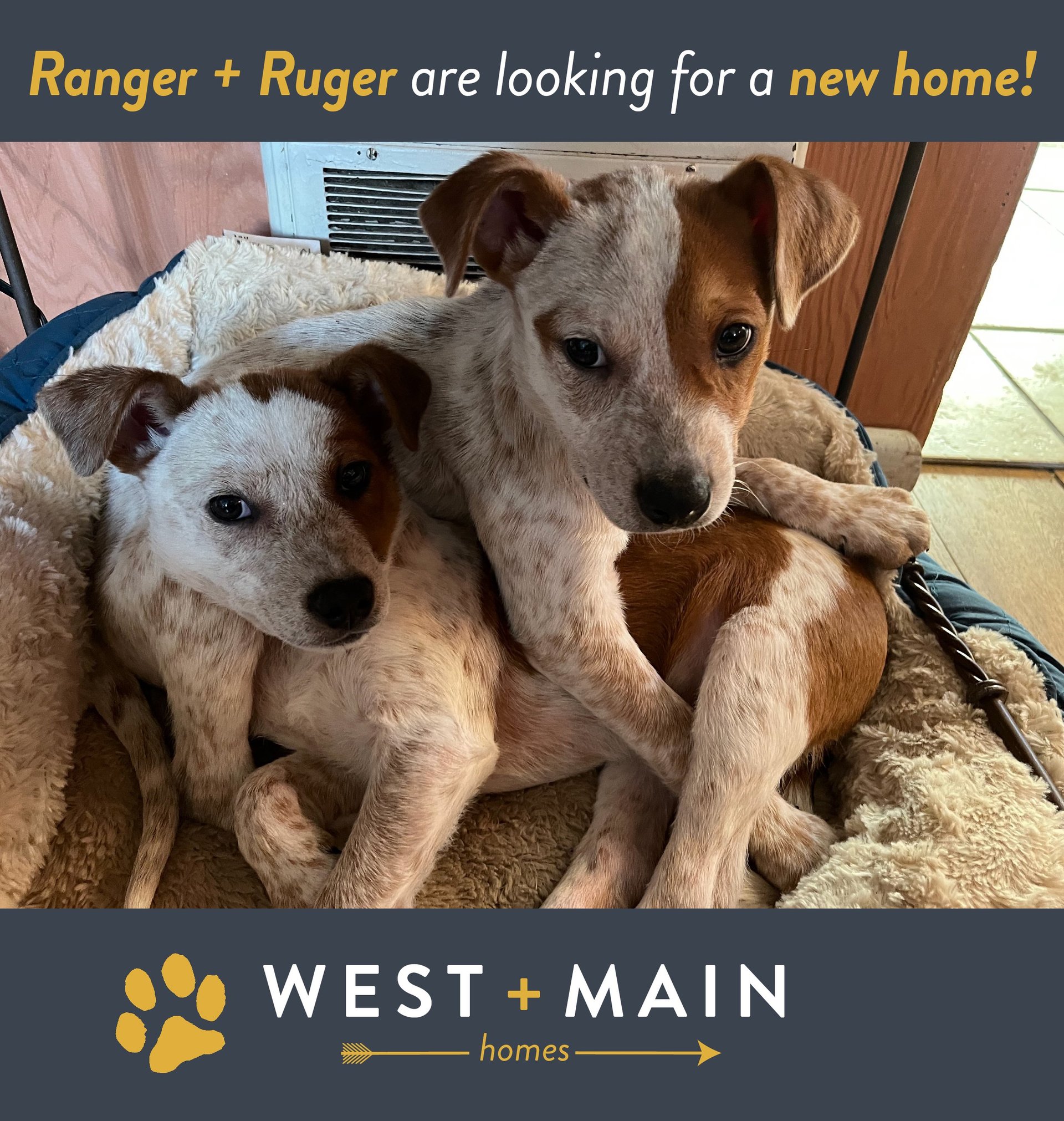 Smart, sweet, cuddly male puppies are ready for adoption! Ranger and Ruger are cattle dog mixes and can be adopted together or individually. They are being fostered in Denver but the adoption will go through Soul Dog Rescue in Fort Lupton.