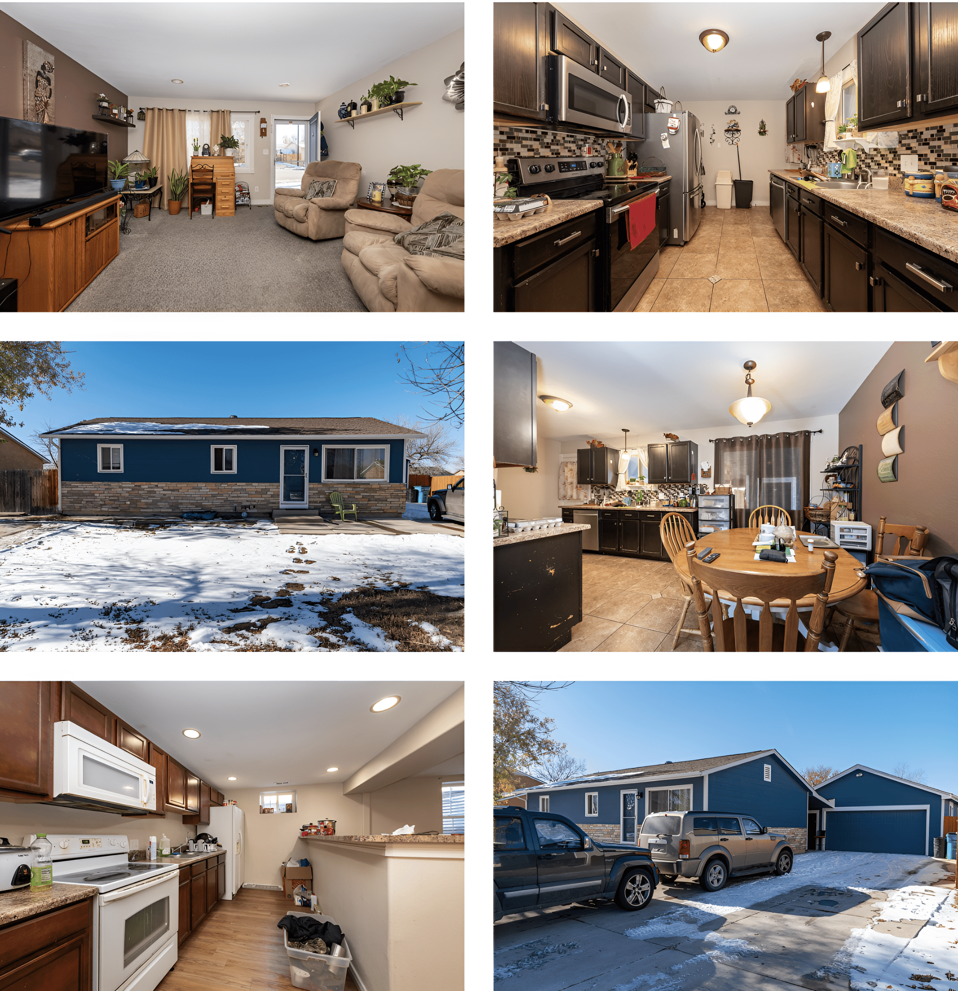 Whether you are looking for a starter home or your first investment, this property has potential for both! Approaching the front, you will notice a well-maintained exterior, front yard, and a large concrete driveway that leads to the two-car detached garage, which has plenty of room for storage and additional buildout. The backyard is fully fenced with ample space for pets and holding gatherings. Peeking in the front door, you will feel at home with the cozy living room that boasts plenty of natural light thanks to the large front window. The kitchen features updated countertops, backsplash, and laminate flooring. The main level has a total of three bedrooms and one bathroom, along with a mudroom/laundry room off the kitchen. This property has an additional front driveway that leads to the side entrance for the downstairs unit. This unit has its own private yard and covered patio! Downstairs, you will find a kitchen with bar seating that flows into the entertainment room. The downstairs has a total of three bedrooms, one full bathroom, and laundry. Live in the top, rent out the bottom or vice versa, and get some rental income, making this property a great first investment or addition to your portfolio.