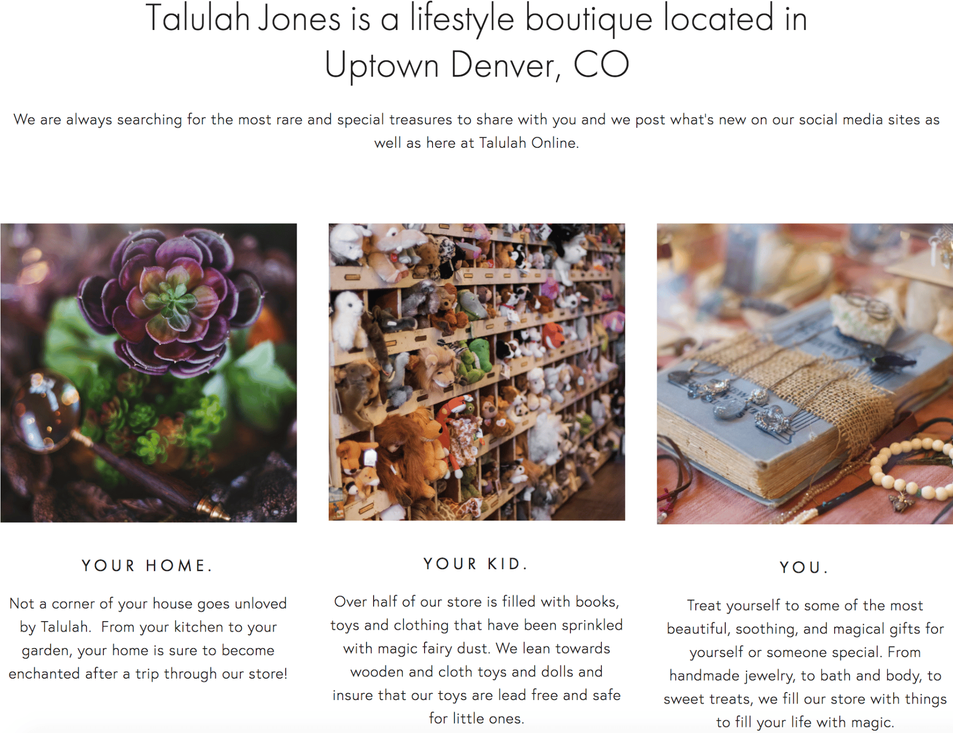 In fact, for every dollar spent at a small business in the U.S., approximately 67 cents stays in the local community. So when you Shop Small on Small Business Saturday—and all year long—it can help add up to a big impact. Talulah Jones is one of my favorite small shops in Denver. You can find some of the most unique things for your home as well as toys, books, and clothes for kids! - Kathleen Barlow