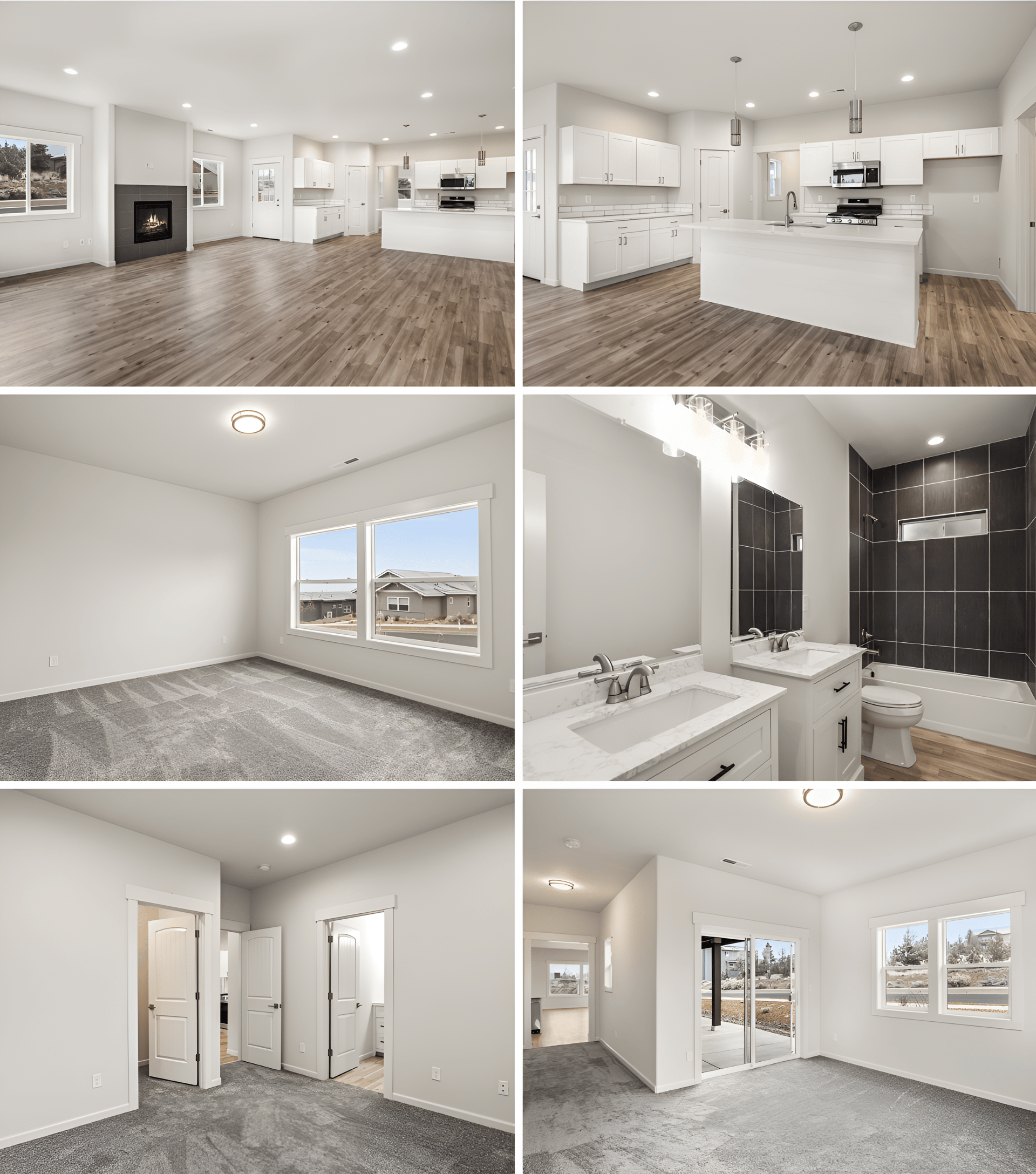 On a corner lot, this property offers the convenience of a stair-free lifestyle. With a focus on low-maintenance living, the landscaping has been thoughtfully designed to enhance both aesthetics and practicality. This new construction home features three bedrooms, including a versatile third room perfect for an office/den with a private entrance from the outside. Inside, laminate floors lead to an open great room with a gas fireplace. The kitchen has stainless steel appliances, white cabinets & solid surface countertops. Both front bedrooms offer walk-in closets, primary bathroom has a tile surround walk-in shower. Second full bathroom offers a shower-tub combo with tile walls and two vanities. Enjoy the breathtaking mountain views from your doorstep and take advantage of the proximity to the aquatic center and nearby walking paths. Best Value in Yarrow, priced for a quick sale!