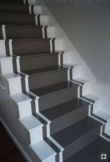 Instead of a carpet runner, paint a wide stripe down the center of each stair and down onto the risers to create a sleek runner from top to bottom.