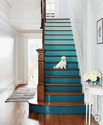 This works especially well if most of your home's color palette is on the milder side. Choose a bright, bold color like yellow or turquoise and turn your staircase into a statement piece.