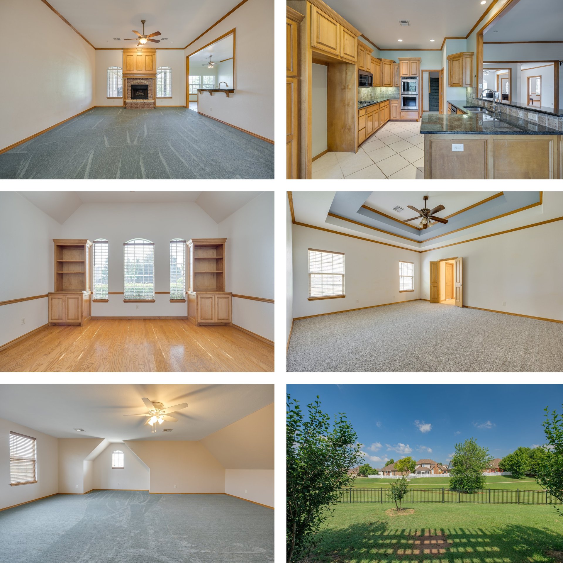 The open floor plan seamlessly connects the kitchen and living areas, creating a fluid and inviting space. The spacious living room boasts a gas log fireplace and modern carpeting, offering both comfort and style. The kitchen is complete with brand-new stainless steel KitchenAid appliances, including a double oven, gas range, dishwasher, and microwave. You'll find two dining areas, catering to both formal occasions with hardwood floors and casual meals adjacent to the kitchen. This remarkable residence features three distinct living spaces. A chic study on the main floor showcases built-in bookcases and hardwood floors, making it an ideal workspace or private retreat. Upstairs, a versatile living area with newer carpeting awaits, perfect for the kids to create their own haven or for hosting movie nights and game tournaments. The primary suite is a true oasis, offering abundant space, a tray ceiling, and plush new carpeting. Access the back patio directly from the primary suite and indulge in the serene view of the adjacent greenbelt. The primary bathroom features dual sinks with a makeup vanity, a soothing soaker whirlpool tub, a walk-in shower, and a generous walk-in closet with built-in dressers. All additional bedrooms are conveniently located on the main floor, each accompanied by its own bathroom, ensuring privacy and convenience for everyone. Picture yourself lounging on the back patio under the charming pergola, equipped with fans to keep you cool while enjoying the lush greenery of the greenbelt. Don't miss out on the opportunity to call this exceptional property your home. Experience modern living at its finest and create cherished memories in this remarkable dwelling, where style, comfort, and the beauty of nature converge seamlessly.