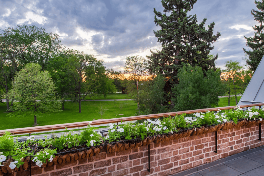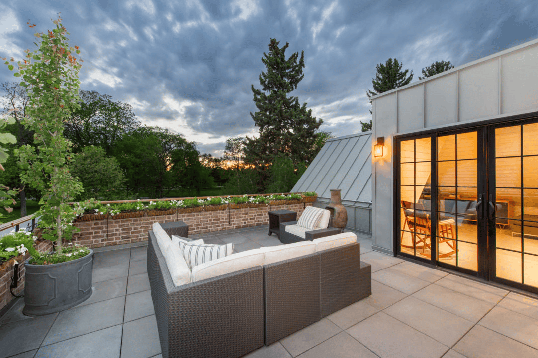 Upstairs, each bedroom includes a private balcony with views of the backyard. King’s third-floor studio, which opens onto a west-facing rooftop deck, is one of Armstrong’s favorite features. “In the winter you see the mountains, and in the summer you get that great energy of the park,” she says. “But when you are sitting on the sofas up there, no one can see you. It’s completely private.”