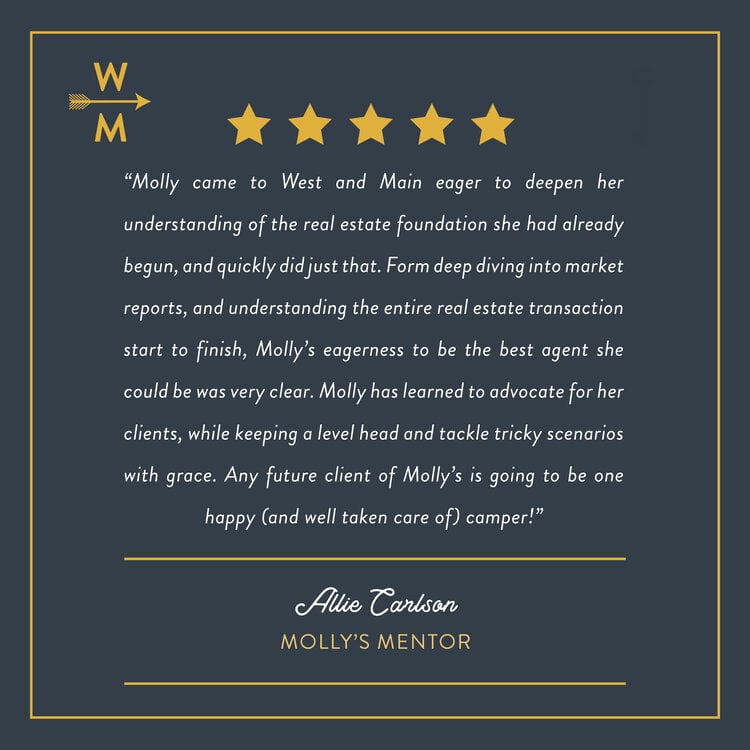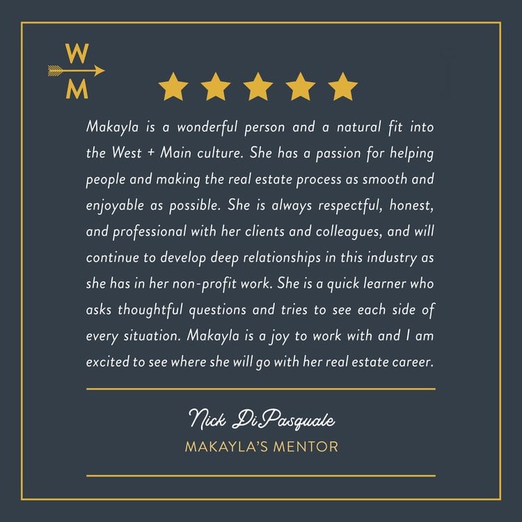 Our mentors average at least $4,000,000 in sales volume per year, have been selling Real Estate at West + Main for at least a year, and have been licensed for at least three years. Many of our mentors have been active Real Estate Agents for a decade or two, and some of them started their career as a New Kid here..no matter how long they’ve been selling property, the one thing they all have in common is their passion for taking care of their clients!
