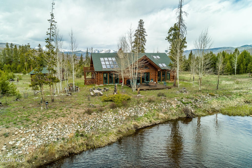 This home on the Colorado River and Rocky Mountain Nat'l Park features a full handcrafted custom hand-peeled pine log exterior and interior contributing to its classic Colorado mountain aesthetic. Inside the spacious layout includes 3 bedrooms and 3 and a half bathrooms accommodating both family living and guest entertainment. This one of a kind single family home offers a blend of modern charm and rustic comfort. It is sold furnished to the nines of which was done by a professional decorator and every beautiful thing is included, even antiques and taxidermy. Built in 1996, this 3,486 square foot residence sits on a generous 3.46 acre lot providing ample space and privacy. 441 s.f. old timers bunkhouse cabin is also on the property. Direct access to the Grand Lake snowmobile trail system and one of the few locations to offer direct access to North and South Supply ATV trails. Typically the homes in the neighborhood are held as legacy properties for generations.This is a dynamite investment airbnb/vrbo or second home. It doesn't get much better than this storybrook mountain getaway. Grand Lake Village for fine dining, souvenir shops, live theater, boat rentals and more is only 4 easy miles away.
