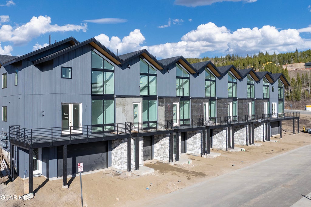 This stunning brand new home boasts a sleek, modern design with 4 beds & 4 baths, offering 2,115 sqft of refined living space and over 2,900 of bldg sqft. Features a built-in ''drop zone'' for organizing essentials & leads you to a spacious top-floor living area. Bask in the natural light streaming through 500 sqft of windows & glass, perfectly positioned to capture breathtaking mountain views. Kitchen comes with upgraded Kitchenaid appliances w/expansive island next to extra wide great room with fireplace surrounded by floor to ceiling windows, seamlessly connects to an oversized deck ideal for entertaining and savoring the peaceful mountain surroundings. A large open floor plan, a contemporary retreat nestled in the serene setting of Winter Park, just a 5-minute walk to Hideaway Park. The gourmet kitchen, equipped with sleek stainless-steel appliances, includes a hood above the gas range and a built-in microwave. Oversized eat-at island, ample counterspace with quartz tops, near the private outdoor patio with more than 150 sqft - hot tub ready, allowing for easy indoor-outdoor living. Open-iron rail stairway enhances the spaciousness of the great room. The upper floor includes a luxurious primary suite, featuring an enormous shower, double sinks, and a walk-in closet, offering a tranquil escape within the home. Two additional bedrooms on this floor share a bathroom, ensuring comfort and privacy for all occupants. This level also includes a laundry room and two linen closets, adding to the home's functionality. A fourth bedroom awaits on the lower level, complete with a 3/4 bathroom, creating a separate private quarters, perfect for guests or a secluded retreat. Additional amenities include an oversized, EV-ready 2-garage with 2 driveway spots, providing ample parking and storage options. Whether you're hosting lively gatherings on the deck or enjoying quiet moments of relaxation, this home is designed for both entertainment and rejuvenation, offering endless opportunities for recreation and leisure. Your mountain lifestyle awaits in this exceptional Winter Park residence.