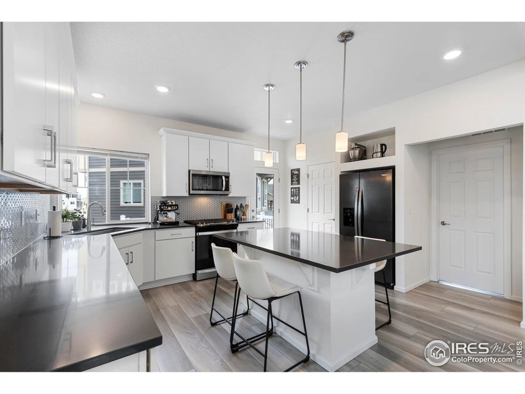 Temporary interest rate buy down or credit toward permanent buy down available through preferred lender. Welcome to modern living in the heart of Erie's Highlands community! This beautifully upgraded 2 bed, 2 bath home offers 1,423 sq ft of open-concept design, stylish finishes, and mountain views that bring Colorado's beauty right to your doorstep. Built in 2022, this move-in-ready home features luxury vinyl plank flooring, quartz countertops, and a chef-inspired kitchen with stainless steel appliances and a large island-perfect for entertaining. The light-filled living area opens to a private fenced yard, ideal for enjoying morning coffee or watching the sunset over the Rockies. The primary suite includes a Large Shower and generous walk-in closet, while the second bedroom is perfect for guests or a home office. A 2-car attached garage, modern systems, and energy-efficient features add everyday convenience. This beautifully maintained home stands out with its upgraded stucco exterior, offering timeless curb appeal and low-maintenance durability. Thoughtfully designed for both indoor and outdoor living, the enlarged backyard patio is the perfect space to relax, entertain, or dine al fresco while enjoying Colorado's sunny days and starlit evenings. Enjoy the low-maintenance lifestyle with HOA perks that include snow removal, front landscaping, and exterior maintenance, giving you more time to explore nearby parks, trails, and shops. Residents of this community enjoy access to a clubhouse complete with a pool, hot tub, fitness center, and gathering spaces-bringing leisure and recreation just steps from your front door. Don't miss your chance to own this turn-key gem with breathtaking views and hassle-free living in one of Erie's most desirable neighborhoods!