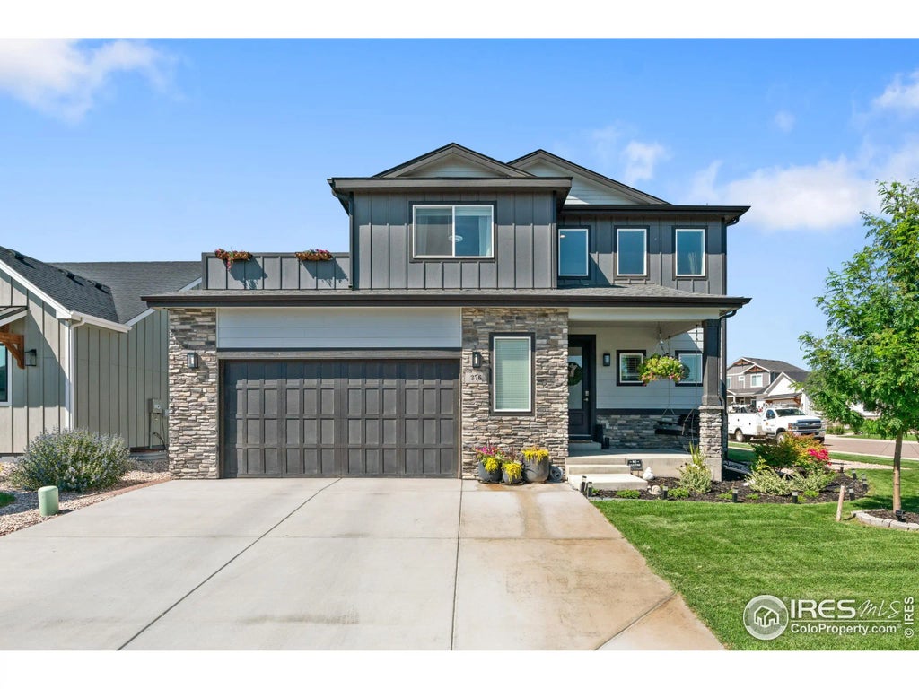Welcome to 376 Bluestar Dr, Windsor, CO. Situated on a corner lot in the desirable new addition of the Greenspire neighborhood, this nearly new home offers a perfect blend of luxury, comfort, and functionality. With access to the scenic trail system around Windsor Lake-ideal for biking, walking, and enjoying Colorado's beauty-this location truly enhances your lifestyle. Inside, you'll find 4 spacious bedrooms plus a potential 5th bedroom or flex space in the finished basement, and 3.5 beautifully appointed bathrooms. The gourmet kitchen opens to the living and dining areas, creating an ideal flow for everyday living and entertaining. Luxury plank vinyl (LPV) flooring runs throughout the main and second floors, adding a modern and durable touch. The primary suite is a true retreat, featuring a private rooftop balcony with breathtaking views of the Rocky mountains. Upstairs also includes a large laundry room for added convenience. The oversized 3-car tandem garage offers generous storage for vehicles, tools, and recreational gear. The finished basement provides additional living space, perfect as a rec room or guest suite. Extras include a whole-house humidifier, electrostatic air filtration system, and a fully landscaped backyard-all contributing to the home's pristine, move-in-ready condition. Don't miss this opportunity to live in a thoughtfully designed home in one of Windsor's most sought-after communities.