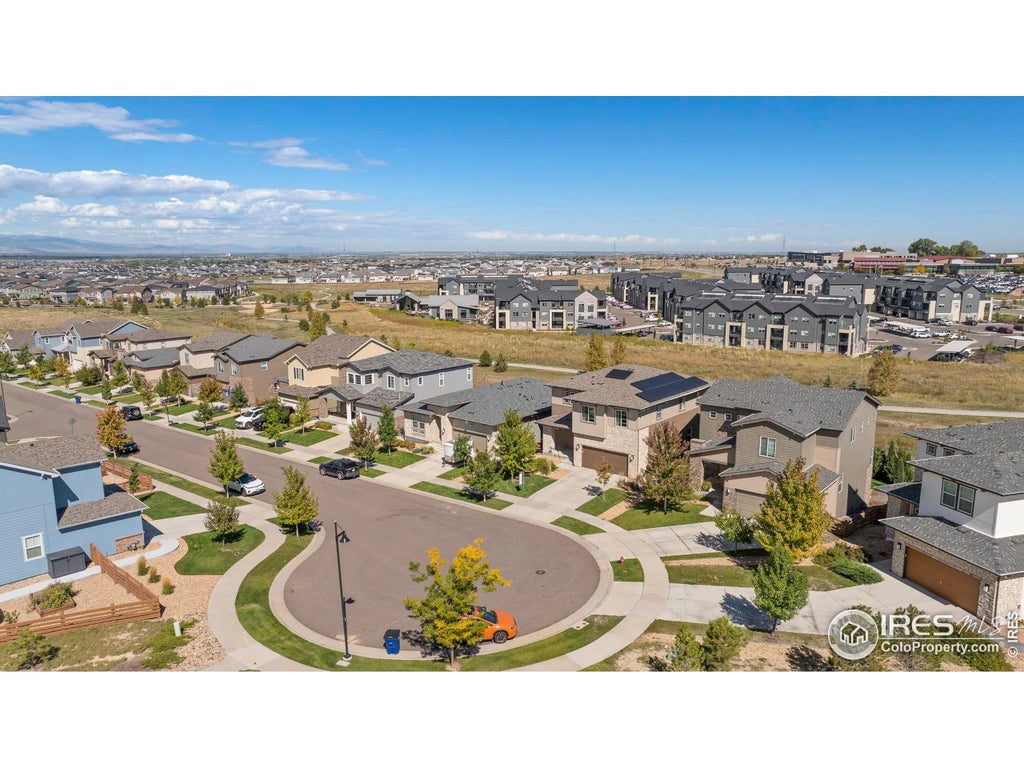 Offering enough space for the whole family, this 2019-built residence presents three distinct living areas and a coveted position backing to serene open space. Nestled at the end of a quiet cul-de-sac, the home blends modern comfort with thoughtful design. Inside, a wide foyer welcomes you into an airy open layout where new luxury laminate flooring extends throughout the main level. The living room, centered around a sleek gas fireplace, opens gracefully to a chef's kitchen featuring a generous island, pantry, and double ovens - ideal for hosting gatherings or enjoying cozy nights in.A tucked-away half bath and a large main-level office add convenience and versatility to the thoughtful floorplan. Step outside to the Trex deck - complete with patio furniture - where tranquil open space views set the stage for morning coffee or evening unwinding. Stairs lead to the fully fenced backyard and covered patio below, perfect for play or outdoor entertaining.Upstairs, four bright bedrooms and three full bathrooms provide ample room for everyone, joined by a spacious loft and centrally located laundry for everyday ease. The fully finished walkout basement extends the home's livability with a conforming bedroom, full bath, and generous recreation space - the perfect third living area for guests, hobbies, or movie nights.Additional highlights include a three-car tandem garage, newer roof (2023), and owned solar panels that enhance efficiency and peace of mind. Tucked away with no through-traffic yet just minutes from Erie's parks, trails, and vibrant community offerings, this residence is the perfect blend of modern elegance and family-friendly functionality.