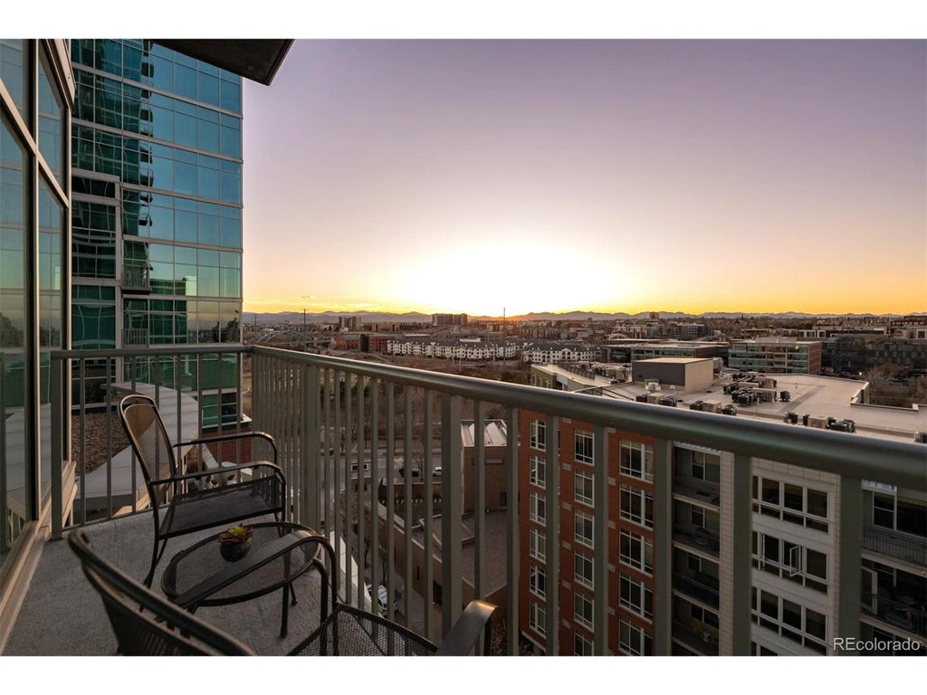 Experience the best of urban living in this 10th-floor condo at the Glass House in Riverfront Park. Boasting breathtaking city and mountain views from any angle, this residence has been thoughtfully updated with brand new engineered hardwood flooring, fresh paint, and a new kitchen range. Floor-to-ceiling windows flood the space with natural light, highlighting the open-concept design and clear sightlines to the city and mountains just beyond. The kitchen features stainless steel appliances, a chic subway tile backsplash, and ample seating space for a dining room or eat-in kitchen island. The bedroom offers a walk-in closet, west-facing views of the Front Range, and fully shuts off from the rest of the unit for added privacy. Amenities at the Glass House include an updated fitness center with discounted classes included as part of the HOA, 24/7 concierge service desk with package holding and secure mailboxes, full-service coffee bar on the 8th floor with a community space available for reservations, an outdoor pool and barbeque area, and a vibrant community terrace with a firepit-ideal for socializing and unwinding. A reserved parking spot and storage unit add convenience to this residence. Nestled in one of Denver's most coveted neighborhoods, Riverfront Park offers unbeatable access to parks, dining, shopping, and Union Station. Whether you're looking for a stylish primary residence or an exceptional investment opportunity, this condo delivers on every level.