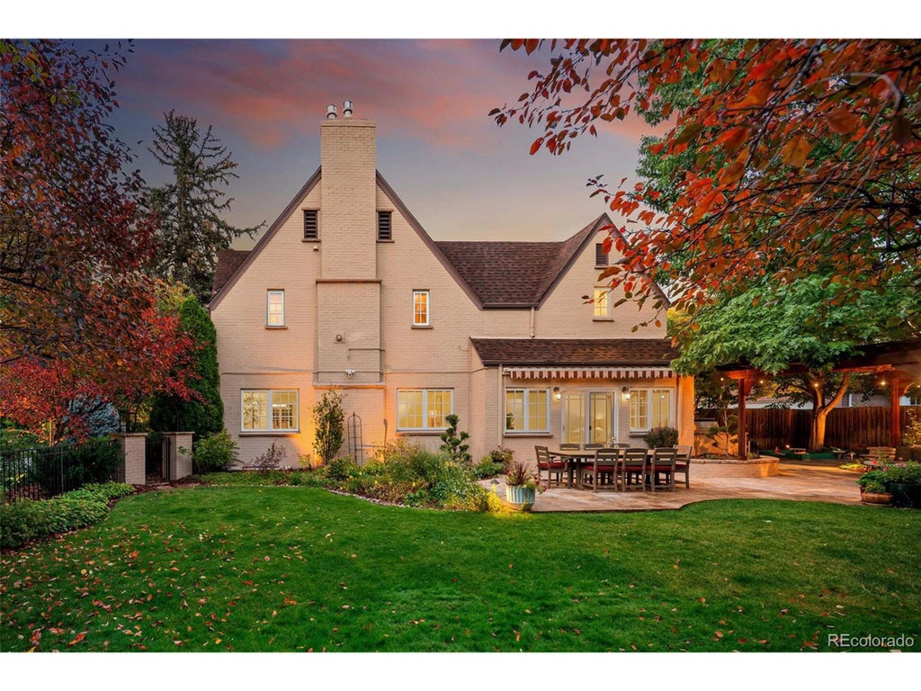Welcome to this timeless 1930 Hilltop Tudor, rich in architectural character and set on a beautiful tree-lined street just one block from Cranmer Park. Situated on a generous 10,300 square foot lot, this 4,000+ sq. ft. home offers 5 bedrooms and 4 baths, blending original charm with thoughtful updates. Inside, every room has its own unique details - from graceful arches to wrought iron railings all make this home special. The expanded and updated layout is ideal for entertaining, with a sun-filled kitchen featuring hardwood floors, a large island, and open connection to the dining room with views of lush foliage. The living and family rooms open to the professionally landscaped backyard, complete with covered patio, built-in BBQ, firepit, iron fencing, and flagstone accents - an inviting space for gathering. Upstairs, the primary suite has two walk-in closets and a stunning new 5-piece bath with Classentino Porcelain finishes and a walk-in shower. Three additional bedrooms, a full bath, and laundry complete the second floor. The finished basement offers a re-carpeted guest suite with full bath, bonus room, and storage. A 2-car attached garage connects through a mudroom for everyday convenience. Recent upgrades include: a brand-new luxury primary bath, new Primary fireplace, custom radiator covers throughout, mini-split AC on the main level, updated lighting inside and out, fresh paint, new basement carpet, stainless refrigerator, hardscaping, and outdoor awning. The location is unbeatable - just moments to Cranmer Park's stunning sunsets, close to Graland Country Day and Steck Elementary, Robinson Park, and neighborhood favorites like Park Burger and High Point Creamery. Close to Cherry Creek for world-class dining and shopping. This is a rare Hilltop sanctuary that perfectly combines history, character, and modern comfort.