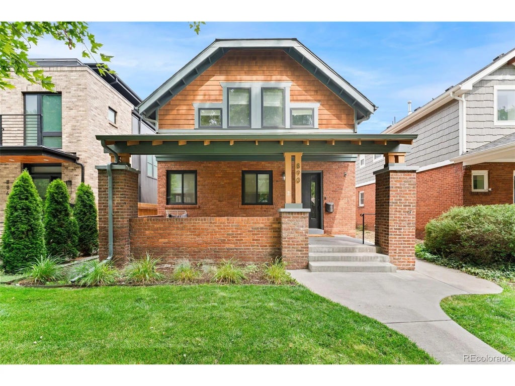 Welcome to this stunning East Wash Park home, located just a few blocks from the iconic park itself. This 5-bedroom, 4-bath residence blends timeless charm with modern design and sits in one of Denver's most coveted neighborhoods. With an open floor plan, gourmet kitchen, and seamless indoor-outdoor flow, the home is perfectly suited for both everyday living and entertaining. The heart of the home is a striking chef's kitchen featuring dark custom cabinetry, dramatic stone countertops, and a spacious island with bar seating, opening to a warm and inviting living area with a sleek fireplace. From the dining space, step outside to a beautifully designed backyard patio-perfect for al fresco dining and relaxed evenings under the string lights. Upstairs, the home offers three generously sized bedrooms, including a vaulted-ceiling primary suite with exposed beams, abundant natural light, and a serene en suite bath. On the main level, a private office provides the perfect work-from-home setup. The finished basement includes two full conforming bedrooms and a large flex space, ideal for a media room, playroom, or guest retreat. With a classic brick exterior, covered front porch, and private fenced backyard, this East Wash Park gem offers style, function, and an unbeatable location.