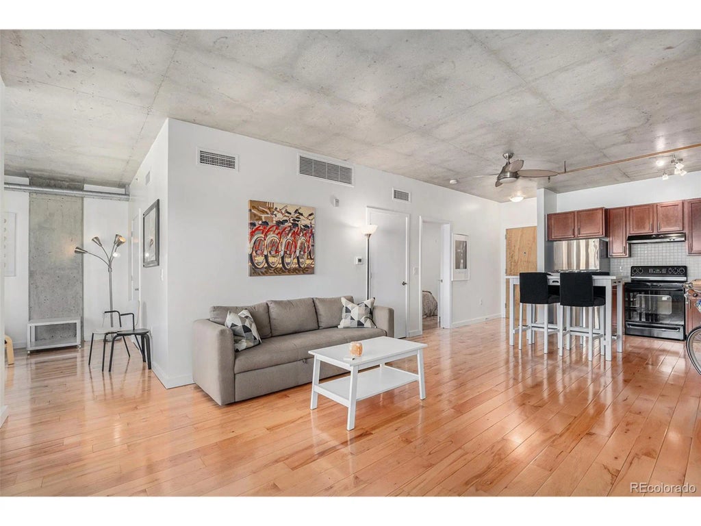 Welcome to 1475 Delgany Street, Unit 304 - Your Downtown Denver Oasis! Experience 821 square feet of thoughtfully designed living in this stylish urban retreat. This 1-bedroom residence includes a versatile flex space-perfect for a home office or even a second bedroom-and a spacious, well-appointed bathroom. The open-concept layout is ideal for both everyday living and entertaining, with a modern kitchen that blends functionality and style. Sunlight pours through large windows, filling the space with warmth and highlighting the beautiful hardwood floors. Convenience is key with in-unit laundry and a dedicated parking space included. Step outside to your private patio and soak in Denver's vibrant atmosphere, complete with stunning mountain views and sights of Ball Arena. Located in the heart of the city, you're just steps from everything you love-MCA Denver, Ball Arena, Union Station with its easy rail connection to DIA, Cherry Creek Trail, dog parks, and countless dining and entertainment options. This chic and inviting condo is ready to be your new home. Schedule a showing today and imagine the possibilities!