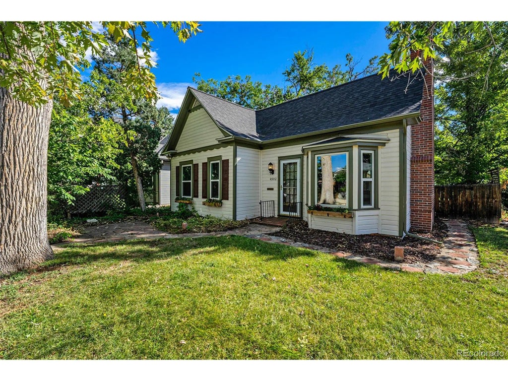 Charm abounds in this 1915 Victorian with hardwood floors, a brick fireplace, and vintage trim. The open floor plan with modern updates makes the home immediately livable, and you'll be enchanted by the incredible back yard. Step through the french doors from your bedroom out to your morning-glory draped pergola to enjoy morning coffee. Mature trees adorn the large lot that features multiple patios and gardens, and a one car garage is ready to charge your EV or to store your gear. A quick jaunt over to dining and shopping on Tennyson and Regis shops and restaurants on Lowell, both Berkeley Lake Park and Rocky Mountain Lake Park, Willis Case golf course, Regis University, and access to I-70 (in just minutes) makes this location a true find. The oversized lot offers good potential for construction of a larger garage and/or an accessory dwelling unit (ADU).