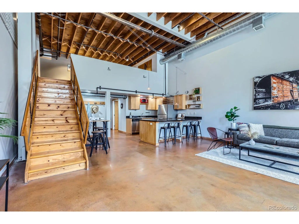 Welcome to this modern loft in the sought-after Bag Factory Lofts building! Located in the vibrant River North (RiNo) district-Denver's most sought-after urban neighborhood, this meticulously designed 1-bedroom, 1-bathroom space boasts soaring lofted ceilings and an open-concept floor plan, creating an airy and expansive living experience with fresh new paint throughout. The lofted bedroom adds a touch of sophistication and privacy while allowing for a dramatic sense of space. Enjoy the ultimate city living with a spacious rooftop deck, perfect for entertaining, relaxing, or simply soaking in the sun. Inside, the huge laundry room provides added convenience and storage space, while the sleek, modern finishes throughout complement the industrial-chic vibe of the loft. Rare for the area, this loft comes with two coveted parking spaces-one covered for added security and protection from the elements. This unique loft combines the best of urban living with the charm and excitement of the River North neighborhood. Don't miss your chance to call this stylish space home!