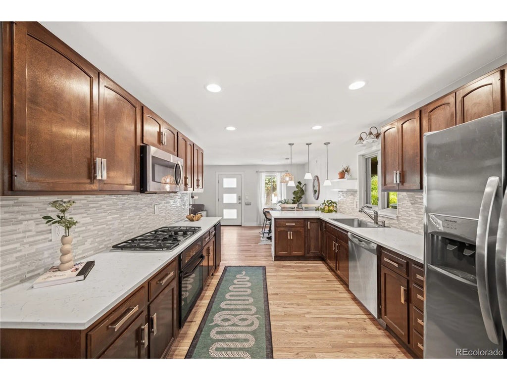 Beautifully updated ranch in Harvey Park! This spacious 6-bed, 3-bath home sits on a desirable corner lot just blocks from the park itself. The home boasts mid-century charm, a modern kitchen, beautiful hardwood floors, and rare primary suite with its own ensuite bathroom. Enjoy central A/C (added in 2022), privacy fence (installed in 2021), radon mitigation system, several newly installed windows, covered carport parking, and ample storage throughout. Room to grow, relax, and entertain in a classic Denver neighborhood.