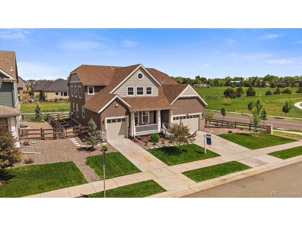 Don't miss your chance to own this incredible home featuring its own private suite that is perfect for multi-generational living (in-law suite), nanny suite or long-term rental! Perfectly positioned on a beautiful corner lot, this home has mountain views from the front and a farm backdrop from the back porch - You can watch cows roaming the pasture from your back porch. The east-facing backyard is ideal for summer afternoons, offering shade, raised garden beds, fruit trees, and a thriving blackberry bush-all maintained with a drip system. Inside, the open-concept main floor is designed for both comfort and style, featuring wide-plank engineered hardwood floors, abundant natural light, and a chef-inspired kitchen with quartz countertops, double ovens, smart appliances, and an oversized island. A spacious walk-in pantry provides excellent storage, while the inviting back patio is perfect for morning coffee or summer BBQs. Upstairs, a versatile loft offers the ideal space for movie nights or a cozy retreat. The primary suite provides an escape with an ensuite bathroom and a walk-in closet. Four additional bedrooms, two bathrooms, and a conveniently located laundry room complete the upper level. The standout feature of this home? The multi-generational suite is a private, fully functional space with its own living room, kitchen, laundry closet, bedroom with a large closet, and a bonus area perfect for a home office or hobby room. A private patio and direct access through the garage add to its convenience, making it an ideal setup for multi-generational living or rental income potential. The unfinished basement provides endless possibilities for expansion, whether you dream of a home gym, entertainment space, or extra storage. Located in the sought-after Flatiron Meadows neighborhood, you'll enjoy easy access to scenic trails, a fishing lake, and the conveniences of downtown Erie and Lafayette-grocery stores, shopping, dining, and more.