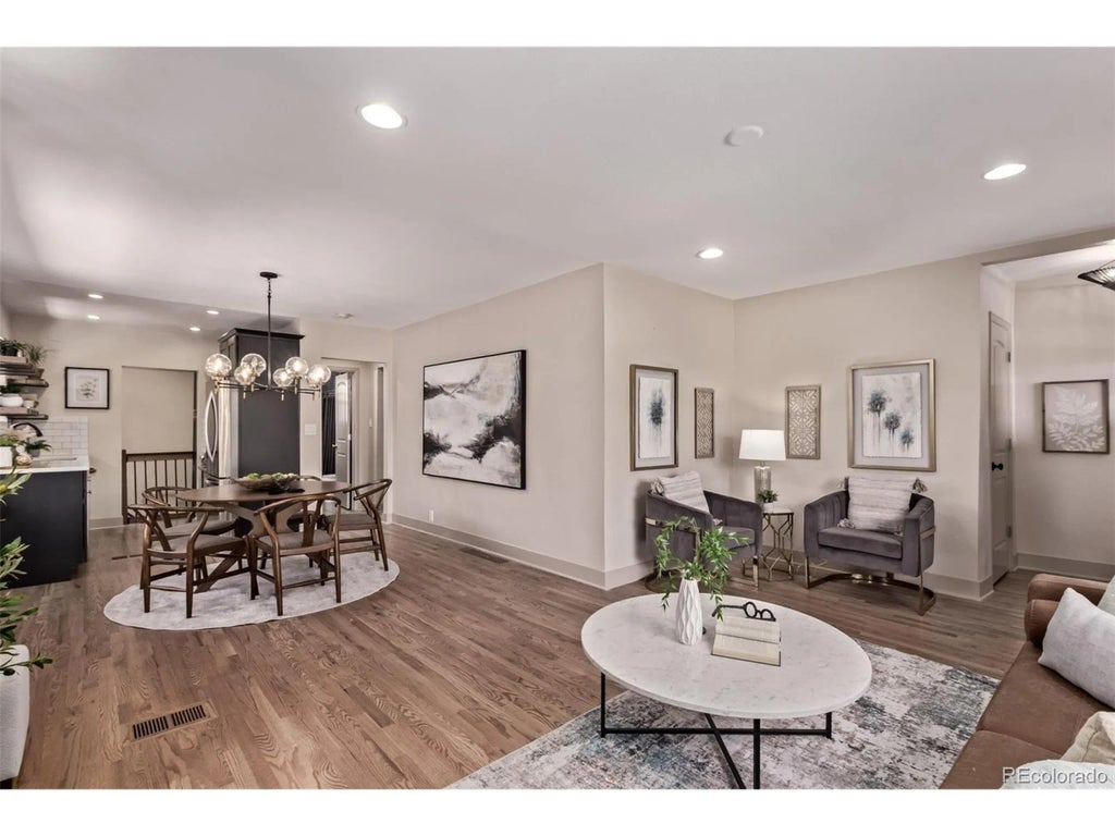 Welcome to this beautifully updated single-story ranch home, blending timeless charm with modern upgrades. Offering 4 bedrooms-two on the main level and two in the basement (including the primary suite)-and 2 bathrooms (a 3/4 bath upstairs and a full bath downstairs), this home provides both comfort and functionality. Discover brand new hardwood floors on the main level (2025), and fresh interior paint (2024). The basement is a true highlight with its **9-foot ceilings-rare for Denver ranch homes-**new vinyl plank flooring, and a thoughtfully added 4th bedroom. Major updates give peace of mind: new sewer line (2023), new furnace (2022), new 200-amp electrical box (2021), new oversized 2-car detached garage with heater and room to add an EV charging station (2023), plus new exterior paint (2023). Enjoy new landscaping (2024) with a stamped concrete patio, and a modern sprinkler system with controls conveniently located in the backyard and furnace room. The smart features include a SimpliSafe security system, Ring doorbell alarm, and an electric water heater. A new washer/dryer (2021) is also included for added convenience! The location is unbeatable-walking distance to Rivers and Roads Coffee (known for amazing espresso and their sausage biscuit breakfast sandwich), Manuel's Taco Truck (arguably Denver's best Mexican food truck), and the acclaimed neighborhood eatery The Plimoth. You're also just a short stroll to City Park and City Park Golf Course, and a quick 5-8 minute drive to RiNo's vibrant restaurants, breweries, and entertainment. This home is the perfect mix of modern updates, unique architectural features, and great location-a true Denver gem ready for its next chapter!