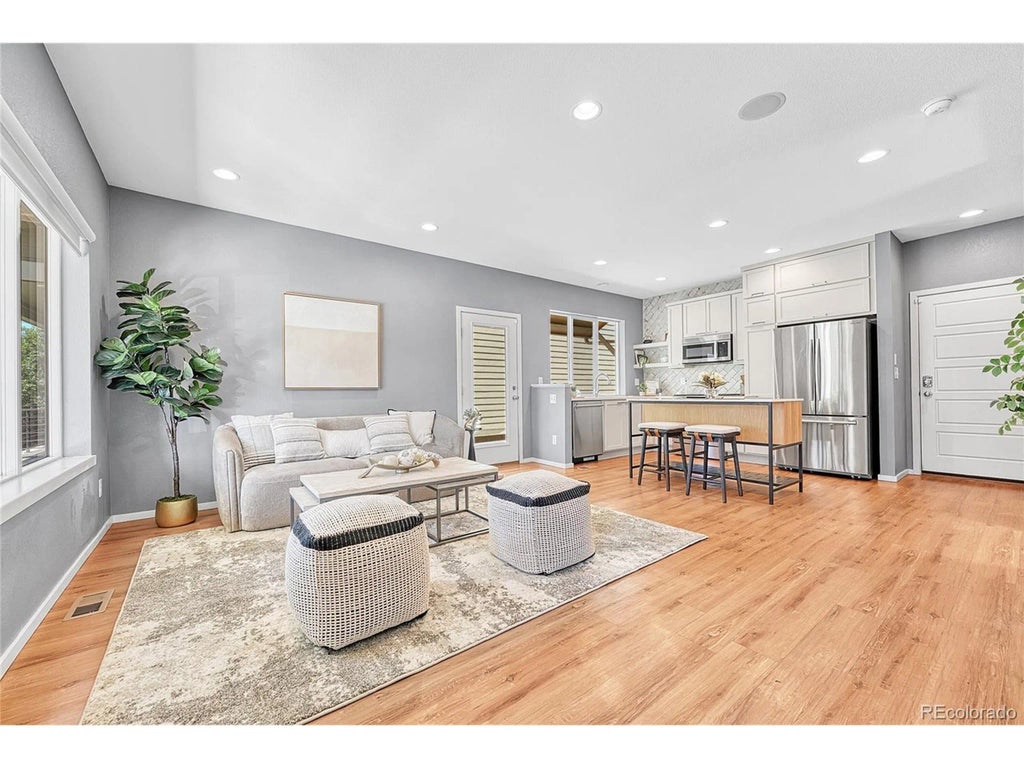 Welcome to this stunning 3-bedroom, 4-bathroom modern home nestled in the highly sought-after Midtown neighborhood of Denver. This beautifully designed residence features an open main level floorplan-perfect for entertaining or relaxing at home. Soaring ceilings and expansive windows fill the home with natural light, while sleek, modern finishes throughout create a sophisticated and welcoming atmosphere. The gourmet kitchen is a chef's dream, complete with stainless steel appliances, quartz countertops, a large center island, and ample cabinetry. Each of the three spacious bedrooms includes its own ensuite bathroom, offering privacy and comfort for all. The primary suite is a luxurious retreat with a spa-like bathroom and generous walk-in closet. A convenient half bath on the main level adds to the functional layout, and the attached garage provides secure parking and extra storage. Enjoy Colorado's sunshine from the private outdoor spaces-whether you're sipping coffee on the front porch or private primary balcony, or hosting friends on the deck. This move-in-ready home offers the perfect balance of indoor and outdoor living. Located just minutes from Downtown Denver, this home offers quick access to major highways, making commutes a breeze. You'll love the proximity to local schools, parks, and Midtown's popular splash pad, along with fantastic restaurants, coffee shops, and a beloved neighborhood brewery all within walking distance. With style, space, and location, this is urban living at its best. Don't miss your chance to own a home in one of Denver's most vibrant and connected communities! NOTE: This home qualifies for the community reinvestment act potentially providing 1.75% of the loan amount with a cap of $7,000 as a credit towards buyer's closing costs, pre-paids and discount points. Contact listing agent for more details.