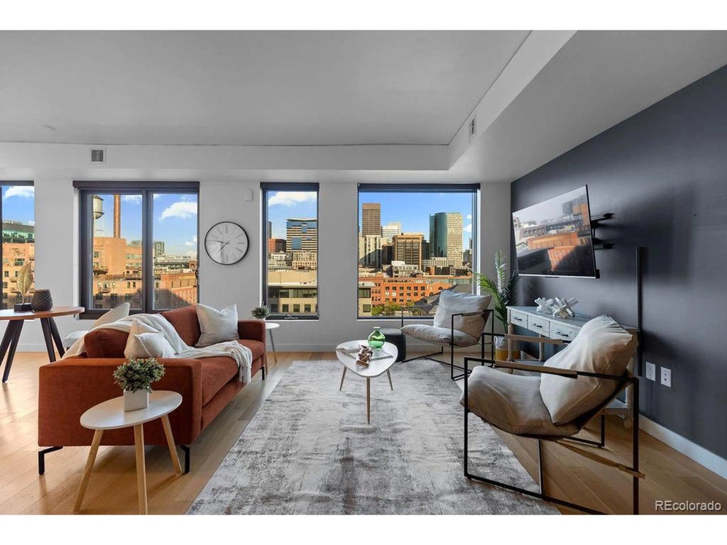 Don't miss out on Downtown Denver living at its finest! Live in the heart of Denver at The Coloradan - a luxury 1-bedroom, expansive 1-bath condo boasting floor-to-ceiling windows with stunning city views, including the iconic Union Station sign. This rare urban retreat combines sleek modern living with an unbeatable location in the vibrant Union Station neighborhood. Beyond the thoughtfully designed foyer you'll find an open-concept layout where the spacious living room flows seamlessly into a bright, modern kitchen and dining equipped with built in desk space. Among the high end features are quartz countertops, soft close cabinetry, wood plank flooring throughout and Bosch stainless steel appliances including a gas range. The bedroom is enclosed by elegant French doors and connects to a cavernous, custom walk-in closet with built-in laundry and brand-new LG washer and dryer. The closet also offers direct access to the dual entry spa-style bathroom where you'll find a wet-style tub & shower combo and ample storage space. Additional storage space, perfect for skis and snowboard gear located off the living room. The Coloradan offers world-class amenities including a rooftop pool and spa with panoramic views of the city and mountains, state-of-the-art fitness center, outdoor kitchen and grills, co-working spaces, community garden and library, concierge service, high-speed internet, and ample entertainment. Secure garage parking is available for a monthly fee with EV charging options and guest parking on site. Bike storage available. Located steps from Whole Foods, award-winning dining, the DIA train, and retail on the ground floor including Sweetgreen, Ghost Donkey, Cafe Landskappe and the new Eggs Inc. - this is downtown Denver living at its finest.