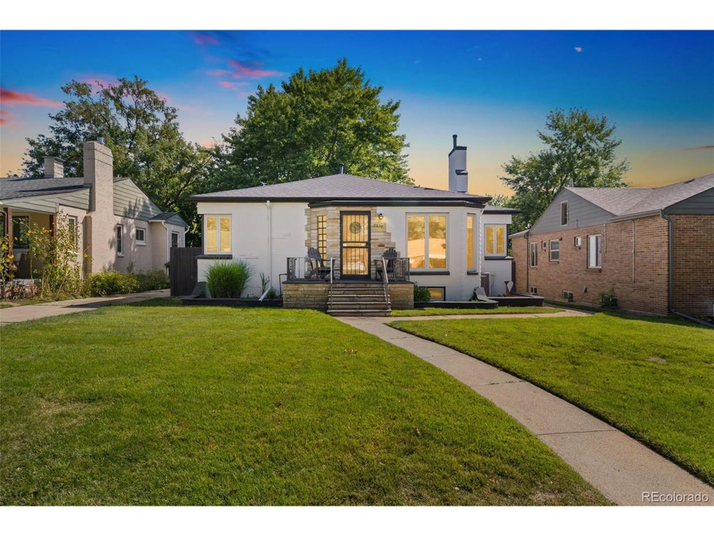 Nestled in one of Denver's most sought-after neighborhoods, this stunning mid-century modern home offers the perfect blend of timeless charm and contemporary upgrades-just half a block from the beauty and recreation of Sloan's Lake.Step inside to a light-filled open floor plan featuring gleaming hardwood floors, a spacious living room with a classic fireplace, and original architecture features that speak to the home's character. The kitchen is both functional and stylish, boasting modern appliances, a cozy breakfast nook with corner windows, and ample storage. Easy access off the dining area leads to your dream outdoor living space: a Trex deck with a custom louvered pergola (with adjustable slats, built-in gutters, heaters, and blinds)-perfect for year-round entertaining.