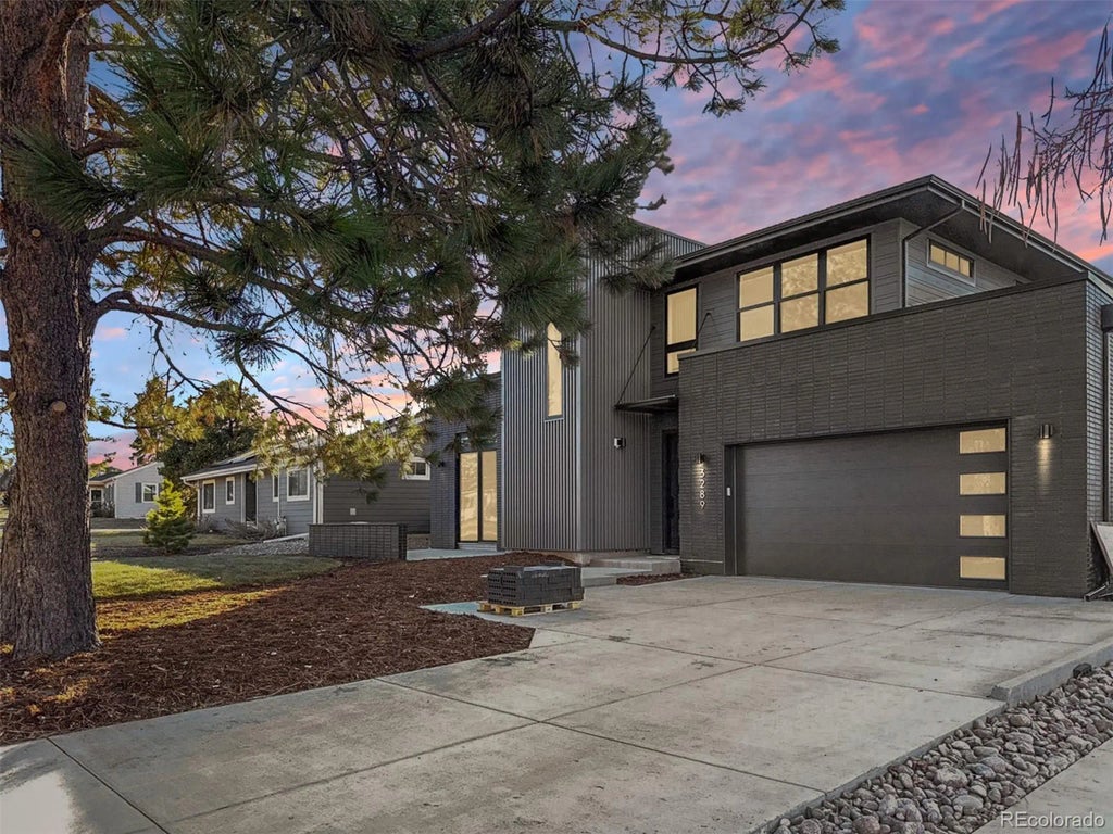 Designed by the renowned Foundry Architect + Design, this home boasts a modern exterior and spacious, functional living areas perfect for entertaining. Built by Cornerstone Builders, known for their craftsmanship and attention to detail, this home combines superior quality with thoughtful design. Upon entering, you'll be greeted by soaring 9ft ceilings and wood floors which create a modern, open atmosphere. The chef's kitchen is a dream, featuring expansive sintered stone Neolith slab countertops w/ a waterfall edge, enormous amounts of cabinet space, LG Studio appliances, & a full walk-in pantry & mudroom. The dining room impresses w/ vaulted ceilings & an abundance of natural light, along w/ a wet bar & wine/beverage refrigerator, offering a mid-century modern flair. The living room centers around a gas fireplace, is pre-wired for surround sound, & has an entertainment nook. Perfect for year-round outdoor enjoyment, an expansive multi-slide door opens directly off the living room to the backyard, where you'll find a spacious patio, pre-wired outdoor surround sound, fire pit & gas line for a BBQ. The light drenched main floor bedroom can serve as an office, playroom, or bedroom. Upstairs, the luxurious primary suite offers a spa-like bathroom w/ custom tile, double sinks, a freestanding tub, backlit mirrors, & an oversized shower w/ rain head & frameless glass. Two additional bedrooms, each w/ their own en-suite bathrooms, provide privacy & comfort. The finished basement is an entertainer's haven w/ a large family room, wet bar, a full bathroom w/ custom tile & lighting, & two additional bedrooms. The versatile sixth bedroom can be used as a bedroom, movie theater room or home gym. Conveniently located within walking distance to Eisenhower Park, Bradley International School (National Blue Ribbon School) & Wilshire Golf Course. Mins from Bible Park & I-25. Such a beautiful home!