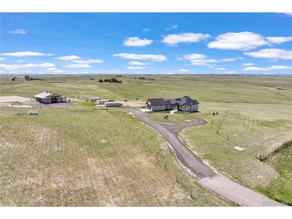 HORSE PROPERTY with Income potential! Paved roads bring you home to a circle drive that access home & horse barn.Empty nester floor living with fantastic views from every window .Newly renovated spaces create bright, open and airy feel surrounded by unobstructed views of Pikes Peak to the Flat Irons.Open concept efficient design creates an intimate place to gather at the fireplace or balcony with family and friends, overlooking horse pasture and mountain views.The walk out basement apartment has a separate kitchen, laundry ,2 beds,,jack and Jill bath and private patio, designed for split living with guests, elder parents, older children or an income producing renter.The fields are fantastic soil that drains and melts easily, allowing your horses to have turnout YEAR ROUND.The arena drains well so you can ride even after a heavy snow.The turnout shelters and overhangs allow for carefree turnout no matter the weather.The trail system gives you versatility so your riding is not limited to the arena ,you can adventure through the neighborhood bridle trails. AG water well allows you to legally keep your animals at home. High ceilings create natural light and fresh air. There are 6 stalls with 8 possible, all with overhangs and runs, Nelson heated waterers plus 3 turnout paddocks with shelters that can be opened to large fenced pasture. A perfectly appointed tack room next to hot and cold water wash rack ,large aisle and a lovely porch create a great place to relax, tack up and ride.Make your farrier happy as well with paved access to the barn. Rent the barn, or the apartment or bothThe entire operation could easily be converted to dog kennels for boarding, breeding, training or grooming business. No mud on your tires here.All of this is just 12 miles to Southlands Mall 30 minutes to the airport, close to Parker, the Colorado Horse Park with LOW ELBERT COUNTY TAXES..Desirable Elizabeth schools bus stops at your corner.This Horseman's paradise is waiting