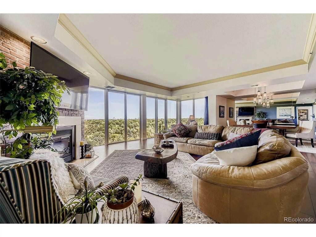 This is luxury high-rise living in highly acclaimed Cherry Hills. Take advantage of the 2.375% ASSUMABLE loan and jaw-dropping list price. This gorgeous North East corner unit has BREATHTAKING panoramic views of the Mile High. Sunrise to Sunset, views galore. Floor plan is perfect for a live/work, roommate or Mother-in-law. Two large bedrooms both boasting full baths, walk-in closets and floor to ceiling windows. Split suite design offering full privacy. Primary Bedroom flaunts an over-sized walk in closet and spa tub with views to get lost in. Open living area features 9 foot ceilings throughout, gorgeous fireplace, floor to ceiling windows with unobstructed views and proper dining area with built in storage butler. Urban contemporary style brick featured in kitchen/living area offers that hip Denver "loft" feel. Stainless appliances. Quaint cocktail/coffee bar, perfect for entertaining. No stairs. Single level living. Two side by side parking spots (Level B2 - #299/#300) in secure underground/heated garage, steps away from building entry/elevators. Secure/private XL storage unit (A11), just adjacent of dedicated parking. Impeccably maintained grounds and stunning landscape including mature trees, ponds and waterfall. Located conveniently to Downtown, DTC, dining, shopping, hospitals and entertainment. 1st class HOA services including: 24 hour security guard, concierge, secure underground parking, secure/temp controlled storage units, underground bike storage, secure package delivery, window washing twice a year, fitness center including heated indoor/outdoor pool, spa, steam rooms, meeting/party rooms, outdoor gas grills, fire pit, pool table, racquetball court, tennis/pickle ball courts, guest rental suites, all on 7.5 acre grounds. Social activities including happy hours/holiday events. Worth every penny!! Lock and go lifestyle, no worries. Opportunity to make this home your "living" work of art. You'll love it here!