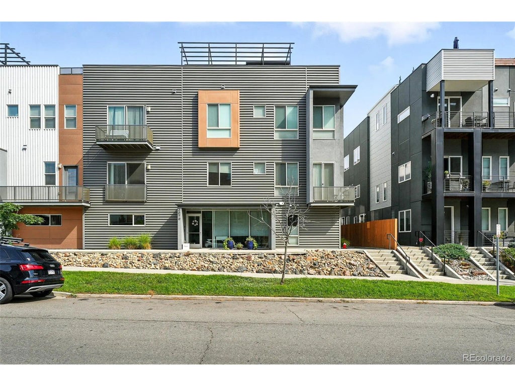 Sophisticated 3 bedroom,4 bathroom townhouse with 1776 ft.2 of stylish comfort. From the moment you step inside, the polished stained concrete floors in the entry level set the tone for the homes modern vibe. Upstairs, rich hardwood floors flow seamlessly throughout all of the main living spaces creating warmth and exceptional livability at every turn. The chef inspired kitchen is a show piece with sleek quartz countertops, premium KitchenAid appliances, and plenty of space to gather around the island with friends. The light filled living area with modern gas fireplace and the open dining area make entertaining effortless. The homes smart layout provides privacy and comfort for all. Each of the three bedrooms offers its own en suite bathroom, giving everyone the perfect mix of luxury and convenience. When it's time to unwind, head up to the expansive rooftop deck - your own private retreat with incredible views of Mile High Stadium and the city skyline. Whether it's morning coffee, a quiet evening under the stars, or game day celebrations this space was made for FUN! All of this in the prime Sloan's Lake location. Just a short walk to Denver's largest lake and surrounding park with fantastic restaurants nearby and unbeatable accessibility to downtown.