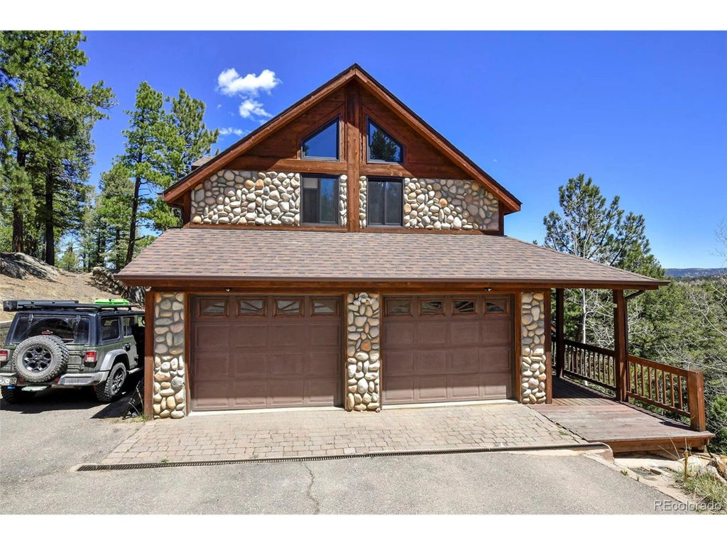 Escape the bustle of city life while staying minutes from Woodland Park in this beautifully designed custom mountain home located in the scenic Rosewood Hills subdivision. Nestled on a 0.73-acre wooded lot with views of Pikes Peak, this 3-bedroom, 3-bathroom home offers the perfect balance of luxury, comfort, and mountain charm. Originally built in 2001 and thoughtfully remodeled in 2018, this 2,639 sq ft residence maximizes its lot with a unique three-story layout that delivers style, space, and stunning scenery. Interior Features: Custom kitchen with quartz countertops, induction stove/oven, and new LG dishwasher-Samsung black stainless steel refrigerator with bottom freezer & icemaker-New custom stainless steel farmhouse sink and abundant cabinetry for storage New LG washer & dryer included - Warm and quiet cork flooring throughout home - Wood railings and accents, vaulted ceilings, and custom wood blinds - Spacious primary bedroom with private balcony, large walk-in closet + secondary closets Luxurious 5-piece ensuite bath with soaker tub and pine finishes - Versatile home office/guest room with Murphy bed Multiple finished crawlspaces for extensive extra storage - Outdoor Living: Large back deck perfect for entertaining or relaxing in your private hot tub (included!) Surrounded by mature trees, sloping terrain, and gorgeous mountain views Quiet and private setting in a well-maintained community with an active HOA - Location Perks: Located just outside the city limits of Woodland Park, this property offers a more tranquil, mountain-living feel with larger lots and fewer city-style restrictions. Enjoy proximity to restaurants, shopping, hiking trails, and outdoor recreation-while returning home to peace and nature. Whether you're searching for a custom Colorado mountain home, a home near Pikes Peak, or a peaceful Woodland Park real estate opportunity, this home offers it all. Schedule showing today and experience true mountain living with modern comforts.