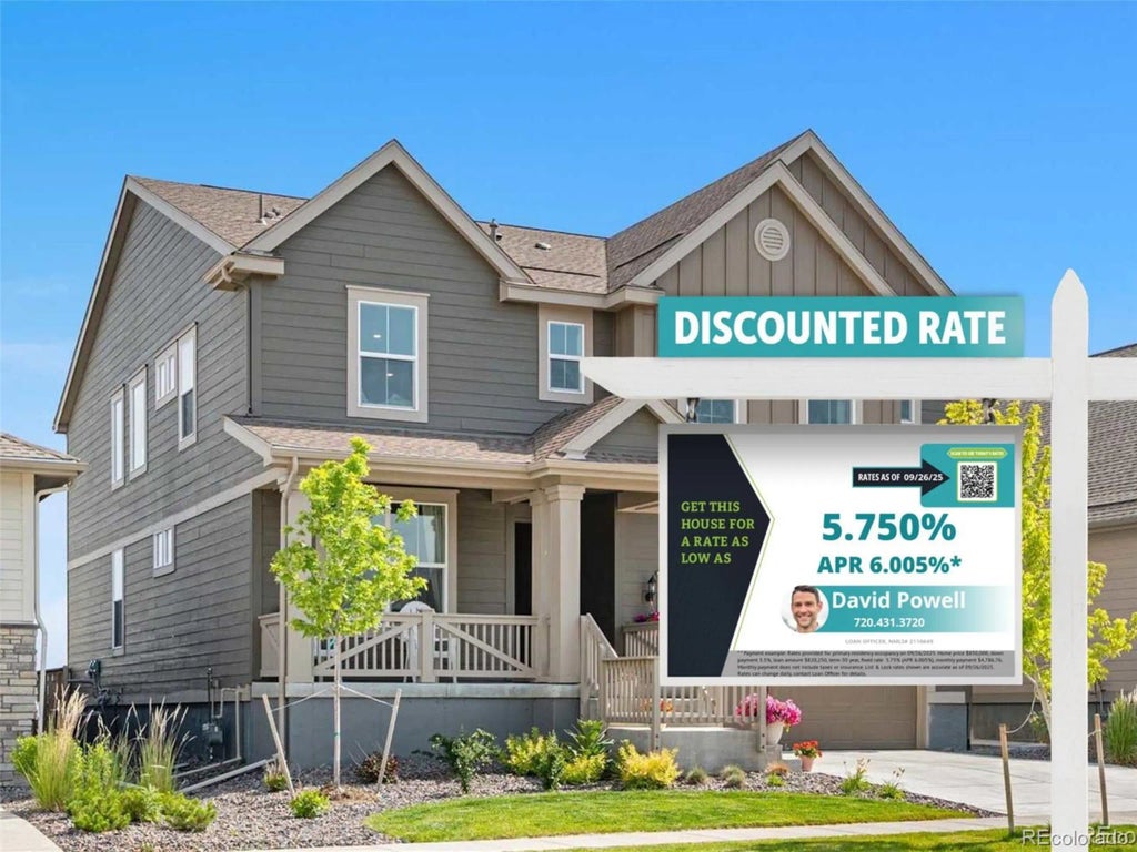 Buyers choice: $10K price reduction or $10K credit to buy down your rate = $465/m saving vs $60/m. Situated on a premium lot backing to open space, this Stonehaven plan by Lennar in the new Parkdale is better than a new with $30K in pro landscaping done. Entering the main level, you pass by the first bedroom (or office) and are greeted by gleams of natural light spilling from the two-story great room. The kitchen is equipped with resilient quartz countertops, an oversized kitchen island, and a custom Japandi tile bamboo-look backsplash. The living room ties everything together with a 200 square foot floor-to-ceiling porcelain feature wall accentuating the Colorado sky views flooding through the large two story windows. The gorgeous blonde EVP flooring is resistant to the walks of life. A thoughtful "tech nook" provides extra space for work and home organization and also functions as a mudroom leading to the 3-car tandem garage with high ceilings for storage options. Outside, enjoy extensive views overlooking open space and mountain views to the west from the 260+ square foot covered Trex deck leading to a stamped concrete patio for sitting and grilling. The lush, luxury landscaped backyard has 750 square feet of pet-safe turf, a perimeter of evergreen shrubs, and two flowering trees. A beautiful open railing system leads to the upstairs, which has an owner's suite with large windows overlooking rolling valley hills and giving off scintillating nighttime lights in the distance. The en-suite bathroom has two walk-in closets. The second floor laundry room has brand new washer/dryer (included). Two spacious bedrooms are connected by a Jack-and-Jill bathroom. There is a loft adjacent to the full bathroom that can be converted to a fifth bedroom by the seller. This house is equipped with two A/C units for the main and second floors enabled by Google Nest. The 1000 square feet basement is unfinished, providing additional storage, play, and fitness space.