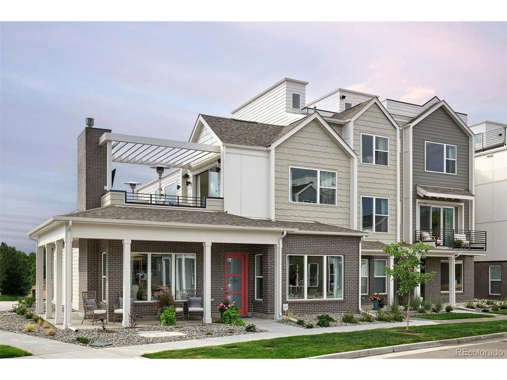 Main floor primary suite townhome - brand new! Enter the great room through the wrap-around front porch that sits on a courtyard. The living room is spacious and surrounded by windows, with a gas fireplace. The chef's dream kitchen has a slide-in gas range with double ovens, a French door refrigerator, quartz countertops with a waterfall island, a beverage refrigerator and a serving buffet/bar. The dining room is also surrounded by windows with views of the courtyard. The bright main floor primary suite has plenty of space for a king-size bed, nightstands and dressers, and room to spare. The suite has a 4-piece accessible bathroom including a shower w/ a bench, double sinks and water closet area, and a walk-in closet plus a bonus closet for additional apparel. The main level also has the laundry room, a mud room, coat closet, powder bath and 2-car garage. The second level has a bright, open loft or flex space, perfect for a TV space, workout room, office, art/yoga/dance studio, kid's playroom - you decide! There is also a half bathroom and linen closet. The loft leads to an oversized deck with a gas fireplace, wooden pergola and gas line. The second level also has a second primary suite complete with a walk-in closet and full bathroom with double sinks, bathtub/shower, and enclosed water closet. Energy efficient with smart home features and EV hookup. Built by Colorado based family owned, Koelbel Communities, in the gated community of Prelude at TAVA Waters. The community has been called "an oasis in the city" as it has a private lake, walking paths, large trees and a resort-style amenity center with an outdoor pool and hot tub with lake views, and a state-of-the-art gym. Located next to the Highline Canal, less than 5-mintues from Lowry, minutes to Cherry Creek North, Anschutz Medical Center, downtown Denver, DTC, and DIA. Mortgage Rate Buy Down Incentives are available for this home. Ask about how we can help you lower your monthly payments.