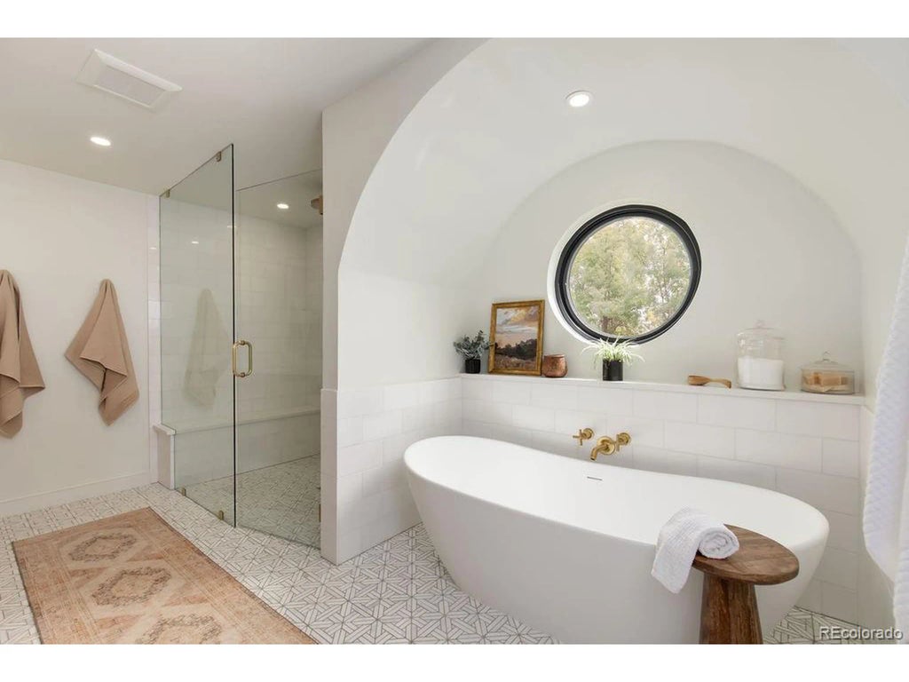 VIDEO + 3D TOUR: https://bit.ly/3615osceola * Step inside an award-winning home that's been named the 2025 American Society of Interior Designers Colorado Crystal Award Winner for Best Residential Reno Under 5,000 Sq. Ft. This modern Tudor masterpiece is a blend of timeless charm & high-end design, crafted with precision & purpose. A custom-built front door welcomes you into a main floor that stuns with wide plank, knot-free white oak engineered flooring, curved archways, & black-trimmed windows that frame every space. The expanded dining area, sleek quartz countertops, Z Line appliances, & custom cabinetry reflect quality & functionality. A walk-in pantry & extra fridge/freezer drawers add thoughtful layers of livability, while level 4 wall texture and designer lighting elevate every surface & space. Double glass doors open to a flex office space or bedroom. Upstairs, the primary suite sanctuary, with marble floors & tile, built-in storage, & designer lighting & mirrors, sets a spa-like tone. A second bedroom, finished laundry area, & a modern bathroom with penny tile detailing complete the upstairs. The fully dug-out basement offers tall ceilings, wood floors, two beds, a full bathroom, stylish wet bar & additional laundry hookups. Whether entertaining or unwinding, the built-in wet bar & living space is perfect for hosting guests or enjoying a quiet night in. Outdoors, you'll find a landscaped yard with irrigated flower beds, mulched play zones, & a hot/cold dog-friendly exterior faucet. The home is solar-ready, with a roof built to support panels, & zoned for an ADU. Every detail-spray foam insulation, whole house water filtration, custom window shades, & high-end finishes-speaks to a home designed not just to impress, but to live beautifully. All of this, just steps from West Highland's vibrant shops, restaurants, & local gems. This is more than a home. It's a statement of craft, care, & elevated living.
