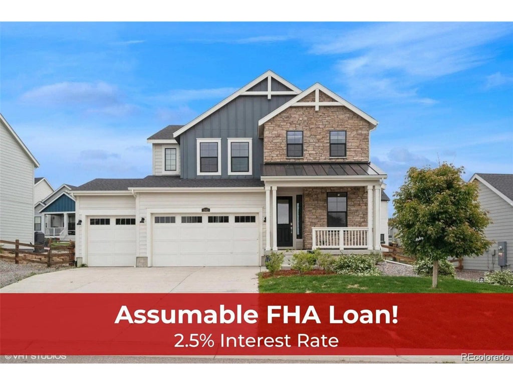 FHA Assumable Loan! Welcome to your stunning 4-bedroom, 3-bathroom home with a spacious 3-car garage and a full unfinished basement-perfect for future expansion or storage! This beautifully upgraded residence was built by Lennar in 2020, features an open-concept layout designed for modern living. Enjoy sleek quartz countertops, stainless steel appliances, and 9-foot ceilings that create a bright and airy feel throughout. The upper level offers thoughtfully placed bedrooms, including a generous primary suite with a walk-in closet and spa-like bathroom. Additional highlights include multiple walk-in closets and a covered patio ideal for outdoor entertaining. A rare opportunity awaits with an assumable FHA loan at an incredibly low 2.5% interest rate-making this home even more affordable for qualified buyers. Located in a vibrant community with resort-style amenities, you'll enjoy scenic walking trails, parks, a community pool, fitness center, and clubhouse-all just a short stroll from your front door. This move-in-ready home truly has it all!