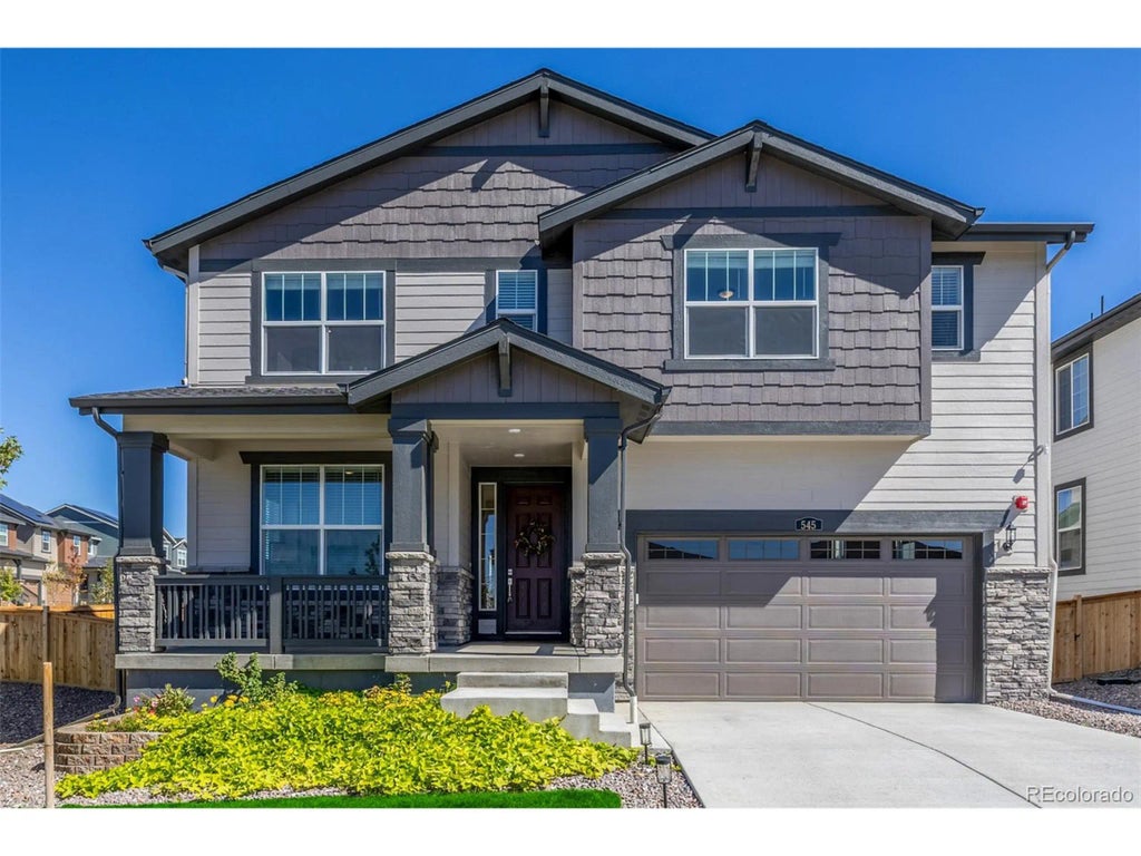 Welcome to the stunning better than new Stonehaven floorplan, perfectly situated on a desirable corner lot with views in Sunset Village! The main level is filled with natural light and offers a versatile bedroom/office, a full guest bath, EVP flooring, and a chef-inspired kitchen featuring a large eat-in island, beautiful quartz countertops and seamless flow into the soaring two-story great room. An open railing staircase leads upstairs, where you'll find the spacious luxurious owner's suite with a spa-style en-suite, a conveniently located laundry room, two secondary bedrooms with a Jack-and-Jill bath, plus a large loft with closet and views and full bath. The unfinished basement is ready for your personal touch, while the 3-car tandem garage, solar panels, and expanded covered patio add even more value. Builder warranty good through 5/19/26. All of this within Erie's charming small-town atmosphere, complete with majestic mountain views, a 63,000 sq. ft. community center, and a 20,000 sq. ft. library. Enjoy nearby shopping, dining, parks, and trails-this home truly has it all!