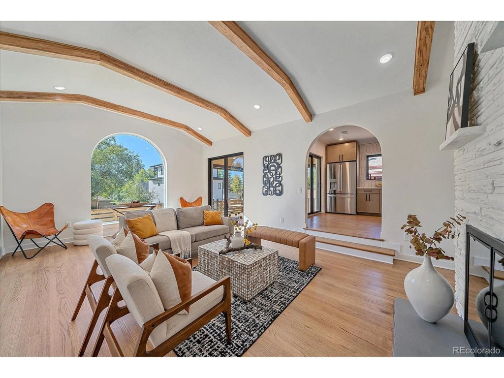 Step inside to a light-filled, open floor plan featuring newly finished hardwood floors, a spacious living room with vaulted ceilings, a classic woodburning fireplace, and original architectural details that showcase the home's character. The kitchen combines style and function with exposed brick accents, modern appliances, and a sunlit eat-in dining area. Just off the kitchen space, you'll find your dream outdoor living area covered patio ideal for year-round entertainment and memories to be made. The main floor hosts a serene primary suite with an elegant en-suite bathroom, plus a second bedroom and full guest bath. Downstairs, the finished basement with tall ceilings offers exceptional flexibility: a large multi-purpose room perfect for a media space, gym, or playroom; two additional conforming bedrooms; a third full bath; and a cozy secondary lounge area with fireplace. Additional highlights include New black custom windows, New roof, HVAC systems, plumbing, electrical, and sewer, beautifully maintained landscaping. Oversized detached 2-car garage with extra storage All of this in an unbeatable location-within the coveted Brown Elementary boundary and walking distance to Highlands Square, Tennyson Street District, and Edgewater. Enjoy the Sloan's Lake trail loop, tennis courts, parks, summer concerts, and those iconic Colorado mountain views. Quick access to downtown Denver, I-70, and the mountains make this home as convenient as it is captivating.