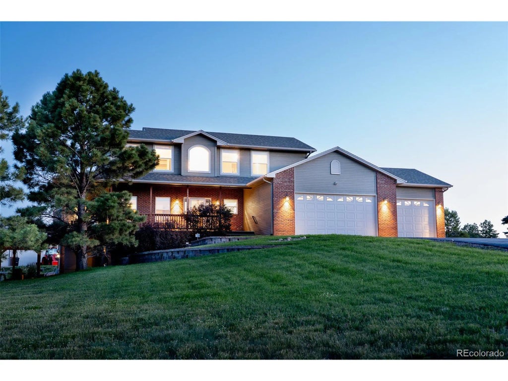 This extraordinary property seamlessly blends luxury living with equestrian elegance, situated on 5 tranquil acres in Stage Run just outside the picturesque town of Elizabeth. Offering a spacious workshop, barn, round pen, paddocks, and expansive pastures for roaming, this estate is a haven for horse enthusiasts or anyone who appreciates wide-open spaces and rural serenity. This horse-friendly neighborhood features miles of dedicated bridle paths for leisurely horseback riding and trail exploration. The main floor of this exquisite home boasts a generously sized primary bedroom, offering a peaceful retreat with abundant natural light and breathtaking views. The great room is a standout feature, highlighted by a dramatic stacked stone fireplace that serves as a stunning focal point, perfect for cozy evenings with loved ones. The open layout, flowing seamlessly into the kitchen, is ideal for both everyday living and entertaining. Upstairs, you'll find three secondary bedrooms and two bathrooms, providing ample space and privacy for the entire family. The finished basement is a true entertainer's dream, with a spacious TV area, a rec room complete with a pool table, a fully-equipped wet bar, and a walkout leading to the expansive covered patio. Step outside to discover meticulously landscaped grounds, a large deck and covered patio - perfect for enjoying Colorado's stunning weather. Additional patio spaces, including a private retreat with a hot tub, provide the ideal setting to unwind after a long day. This home has been refined with new paint and carpet, offering a clean, modern atmosphere while retaining its timeless charm. With its unbeatable location, exceptional amenities, and breathtaking views, this property truly stands as a rare gem.