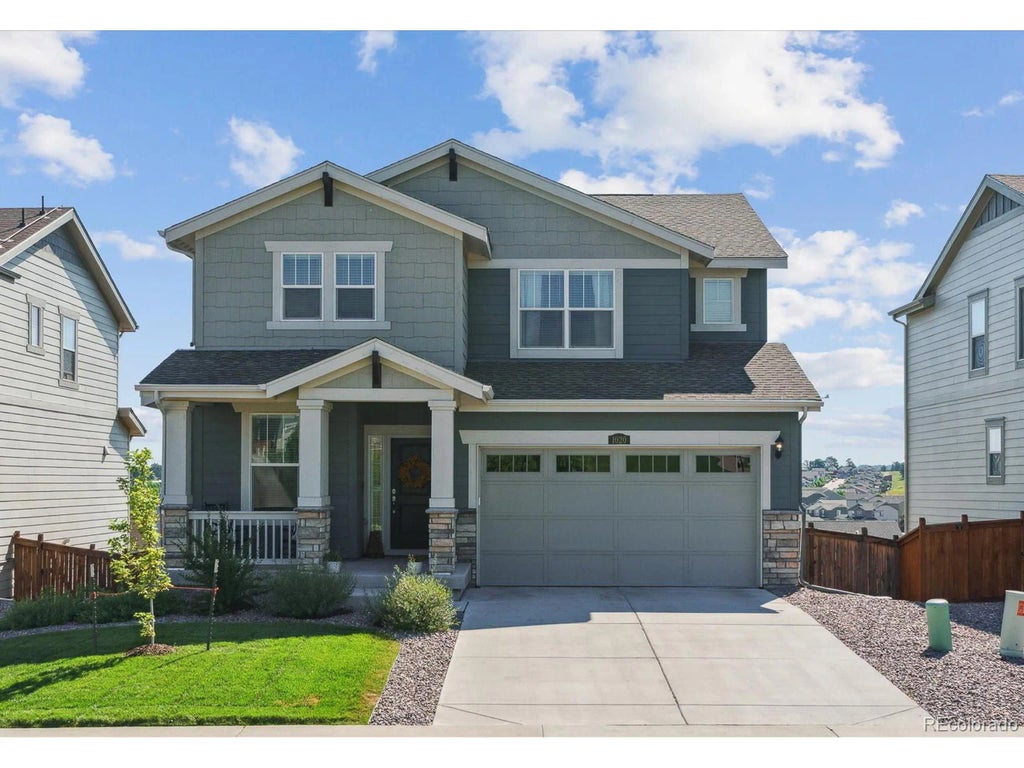 Welcome to this beautifully maintained 4-bedroom, 3-bathroom home offering stylish living space in a scenic Elizabeth, Colorado neighborhood. Just a few years old, this home shows like a model with its thoughtfully designed layout and high-end touches throughout. Step inside to discover abundant natural light, soaring 9-foot ceilings, and an open-concept main level that feels both bright and inviting. A dedicated front office provides the perfect space for working from home, while the spacious family room seamlessly connects to the dining area and stunning kitchen. The chef's kitchen features a massive granite island with breakfast bar seating, crown-molded cabinetry, modern finishes, and sliding doors leading to a Trex deck overlooking the peaceful Elizabeth plains. Upstairs, you'll find the luxurious primary suite with a dual vanity, makeup station, and a generous walk-in closet. Three additional bedrooms share a full bath, and the conveniently located laundry room adds everyday ease. The unfinished walk-out basement offers over 1,000 sq. ft. of potential to create your ideal space. Outside, enjoy the upper-level Trex deck with sweeping views, as well as a covered stone patio and grassy yard below-perfect for relaxing or entertaining. Set in a quiet, well-kept neighborhood with a nearby park, this home truly offers the perfect blend of comfort, style, and Colorado charm.