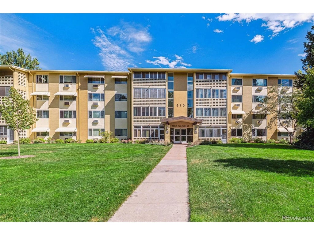 Corner condo at a great price! This property is 870 sf, with 2 bedrooms & 1 bathroom. Spacious living room open to kitchen- the existing appliances are all included. Kitchen features white painted cabinets, stainless appliances, tile floors, & double sided pantry.  Remodeled full bathroom features updated tile work. Screen enclosed lanai- with views of parklike front yard. Updated wall ac unit in living room. Bonus storage room on same floor. Reserved parking space deeded with this condo. Building is close proximity to the clubhouse & all the amenities. This is one of the lowest priced if not the lowest price of all condos in this community & great opportunity to update further & make your own. **Windsor Gardens is Colorado's Largest Age 55+ Active Adult Living Condo Community. Did you know? Monthly HOA Dues include annual property taxes! And heat, water, sewer, trash, round-the-clock patrolling community responders, full time onsite association management, grounds/building maintenance, and activities department. Enjoy clubhouse amenities such as fitness center, indoor/outdoor pools, hot tub, sauna, billiards, library, craft rooms for ceramics, sewing, woodworking, and 9 hole par 3 golf course and onsite restaurant both open to the public. Stay engaged with a wide array of activities, clubs, and events scheduled every month. Additional features include garden plot program, private walking trail and nature preserve, and RV/Boat storage. The Highline Canal runs full length along south side of the complex. RTD Bus Stops located thru-out the community. FHA/VA approved. Close to restaurants, stores, shopping...Minutes to Lowry, Hwy 225, Cherry Creek...Easy access to DIA and downtown. Come see for yourself what Windsor Gardens has to offer. 2021**
